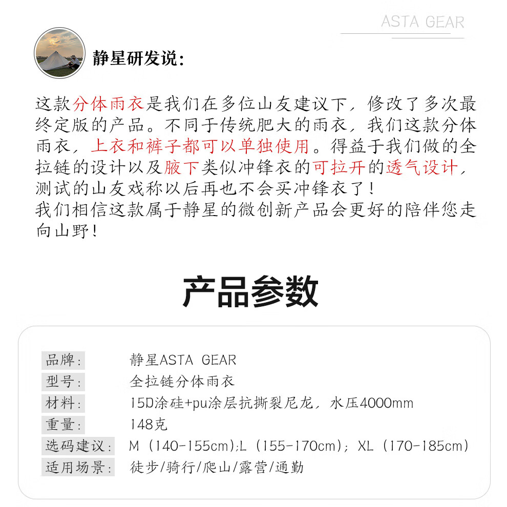 静星静星astagear户外轻量化雨裙15D雨裤野营登山便携雪裙超轻雨披 灰蓝色 均码