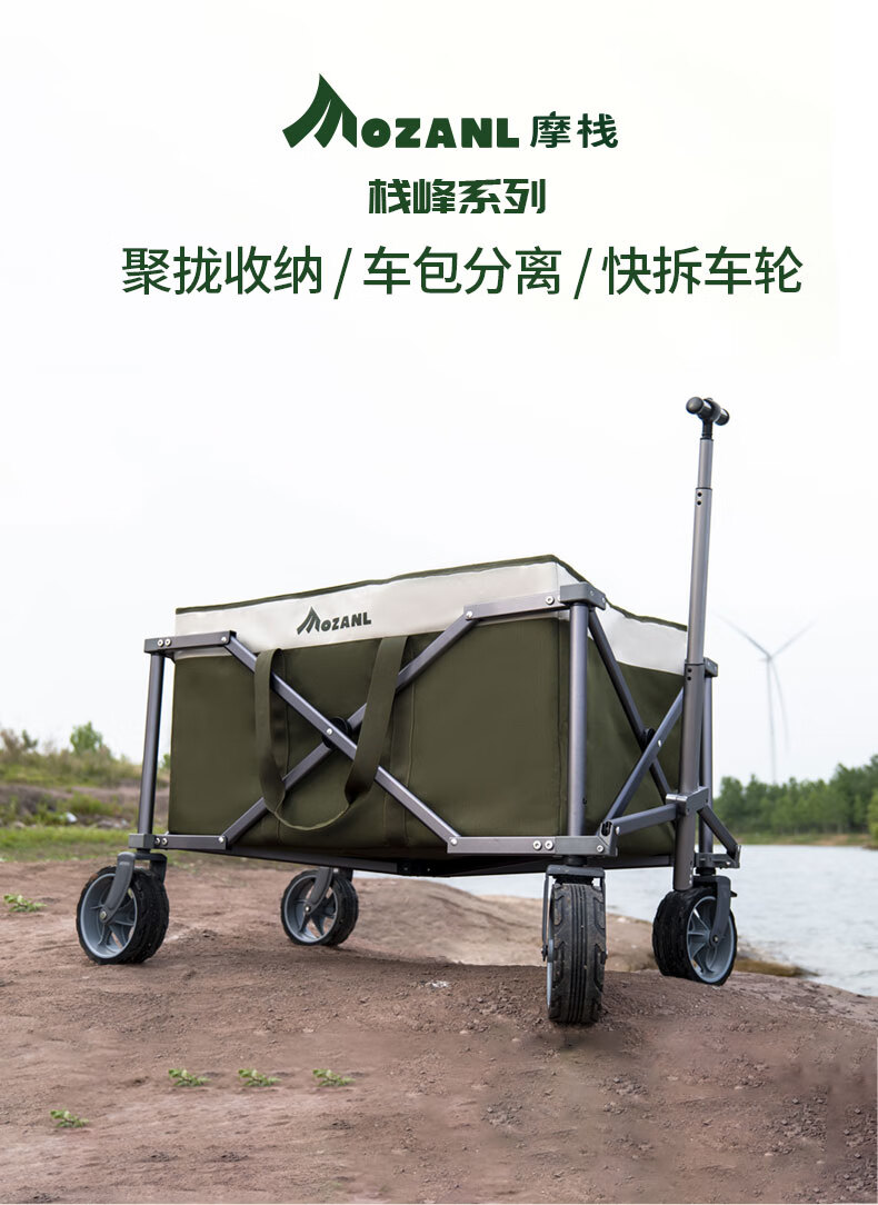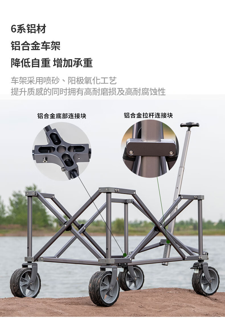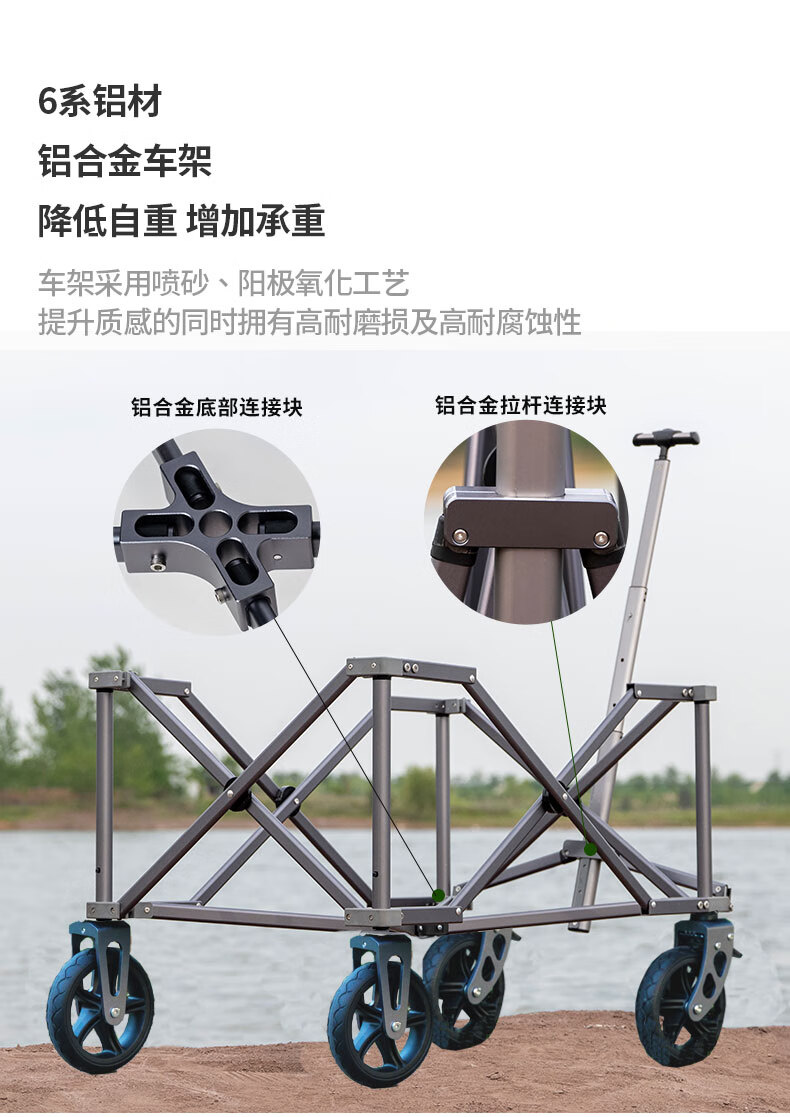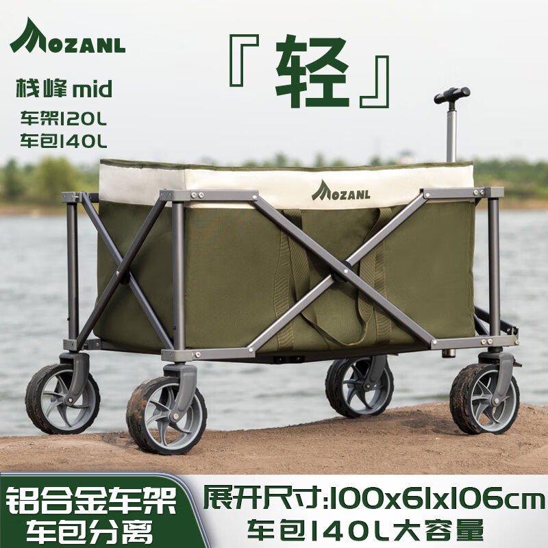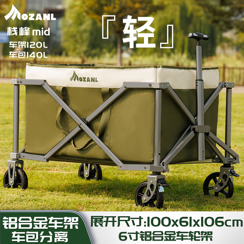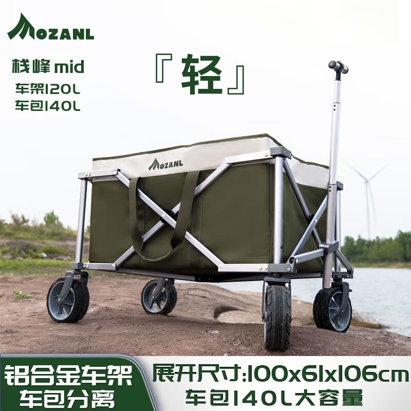 摩栈栈峰mid140升铝合金车架钓鱼露营户外推车折叠野餐营地车包独立 栈峰mid银色 6寸铝合金公路轮款
