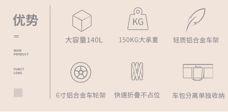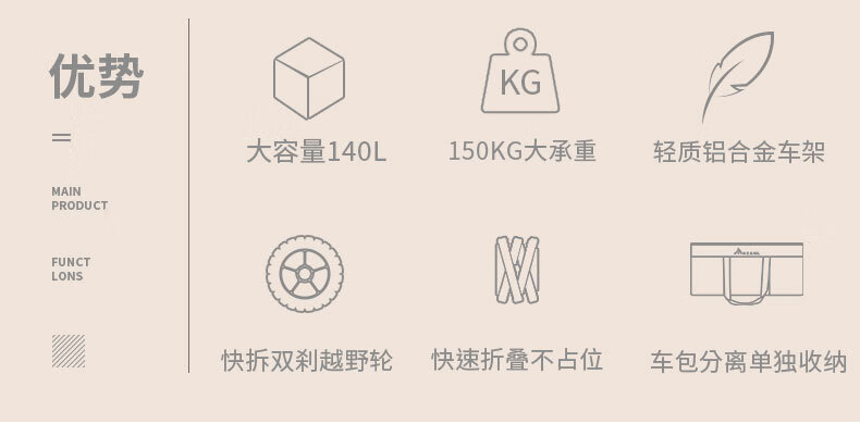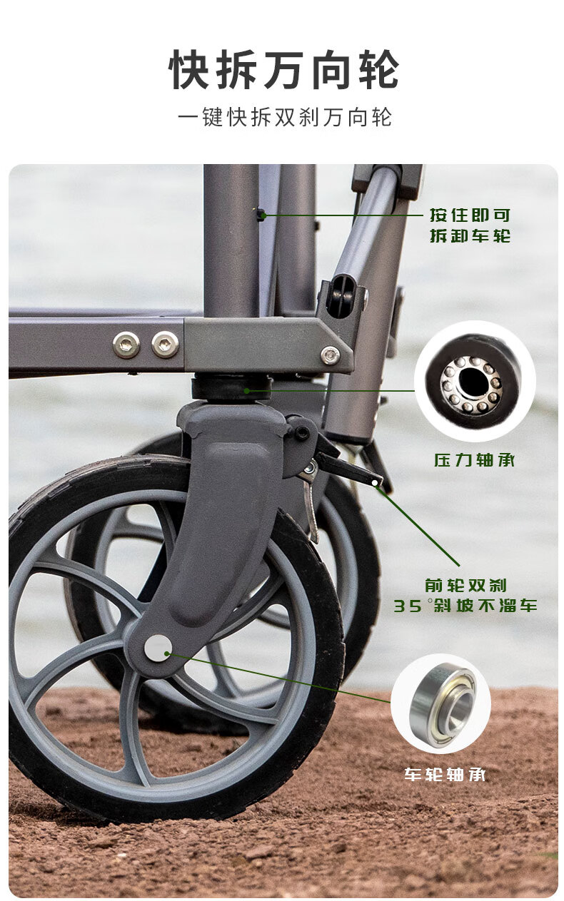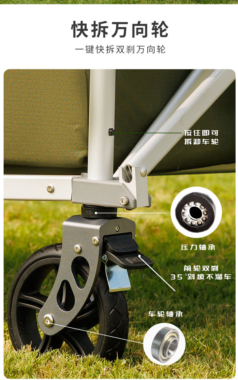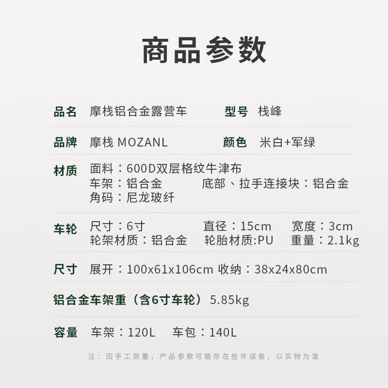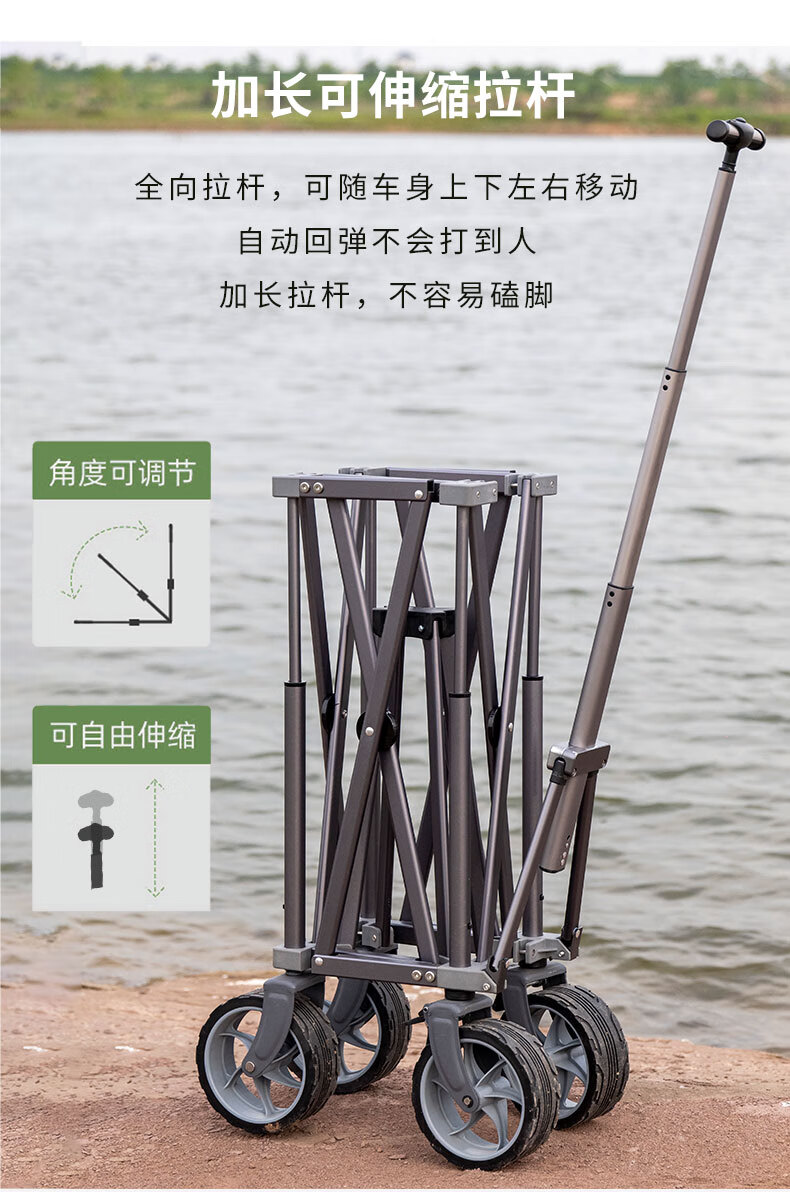 摩栈栈峰mid140升铝合金车架钓鱼露营户外推车折叠野餐营地车包独立 栈峰mid银色 6寸铝合金公路轮款