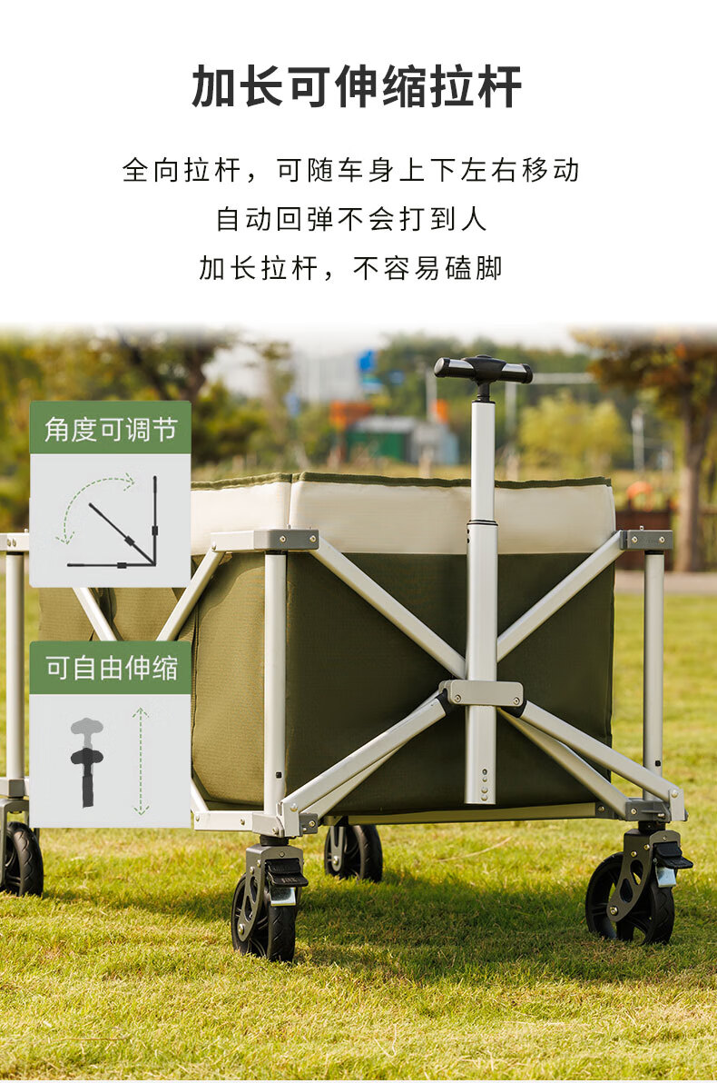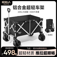 原始人露营推车户外营地车铝合金野营可折叠野餐小拖车桌板大手拉杆车 220L 曜石黑【10cm宽轮双刹车】