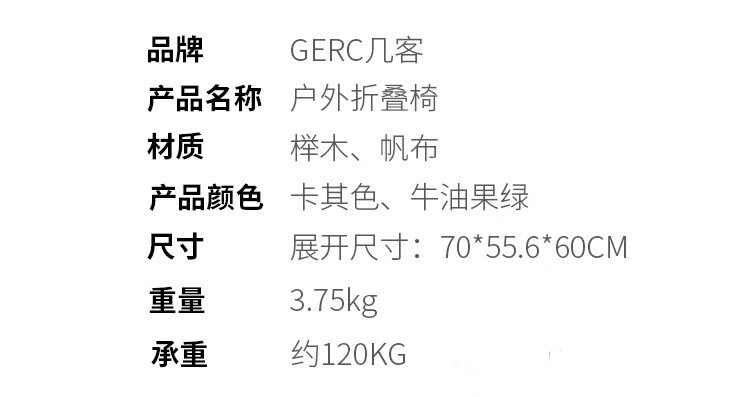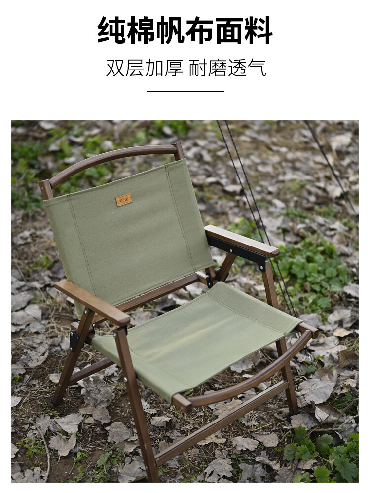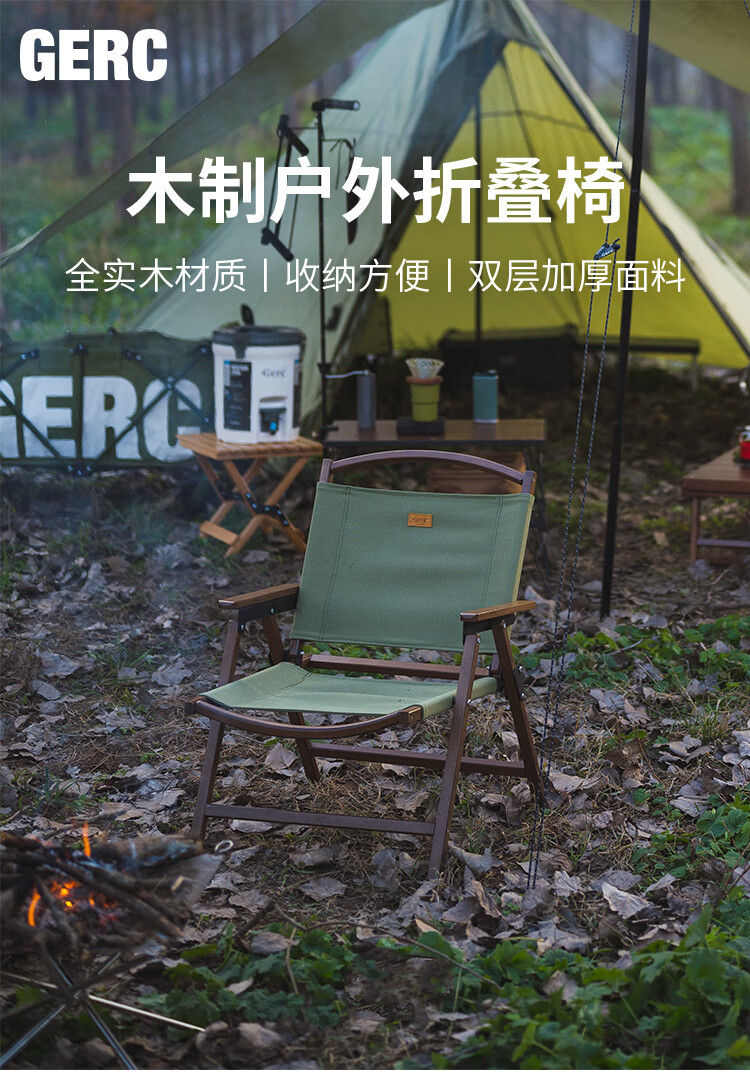 GERC几客户外实木榉木折叠克米特椅野餐露营便携背靠钓鱼凳椅子 卡其色实木椅