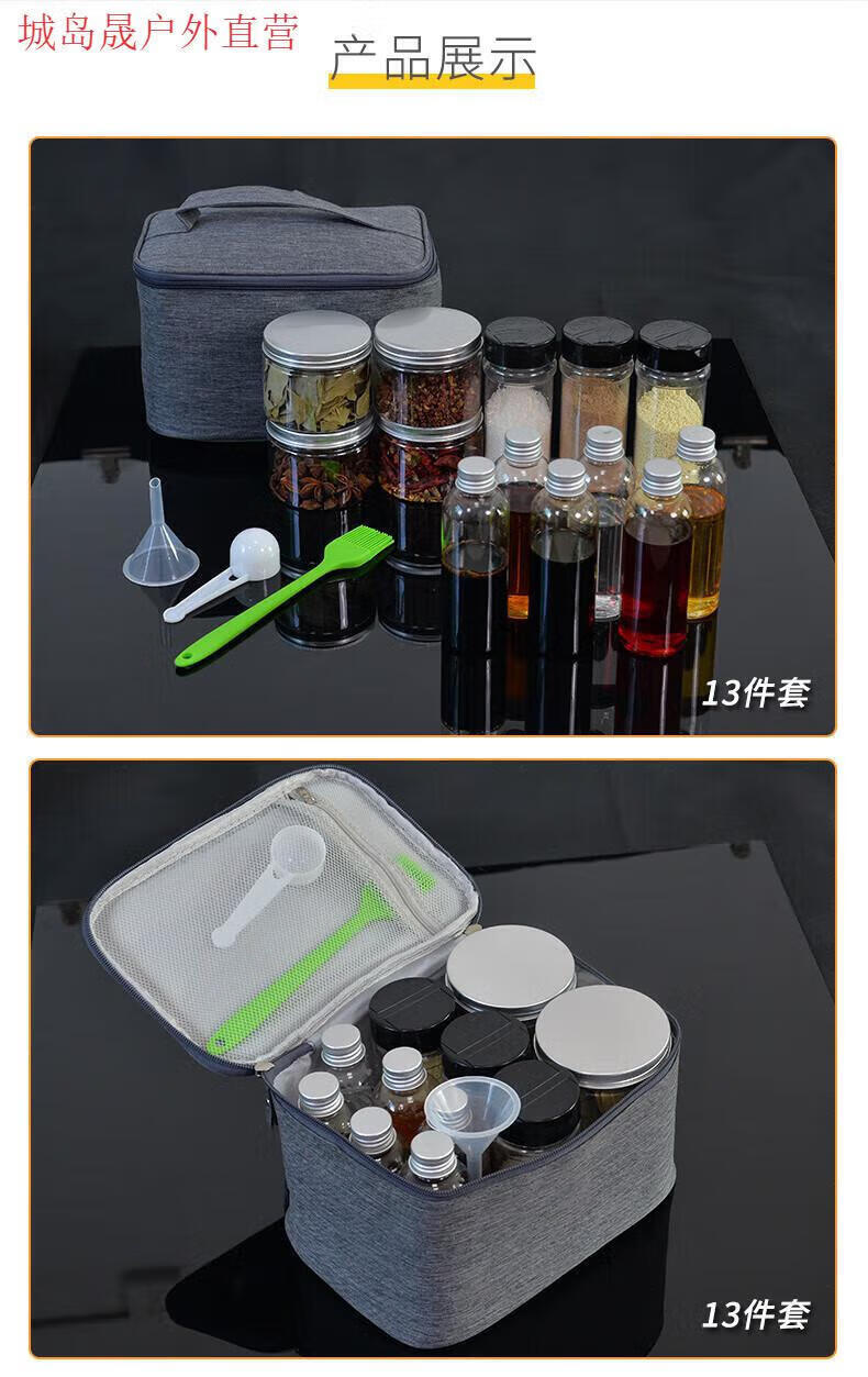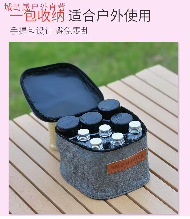 野炊部落户外便携调料套装收纳盒包袋箱野炊露营烧烤防漏分装调味罐瓶式品 红白色调料盒-1(8粉瓶)