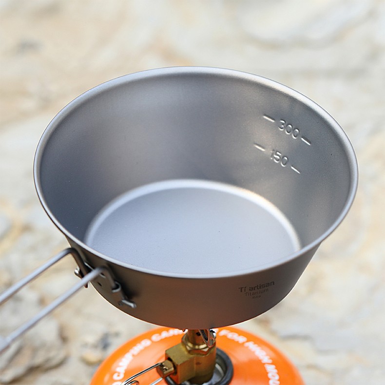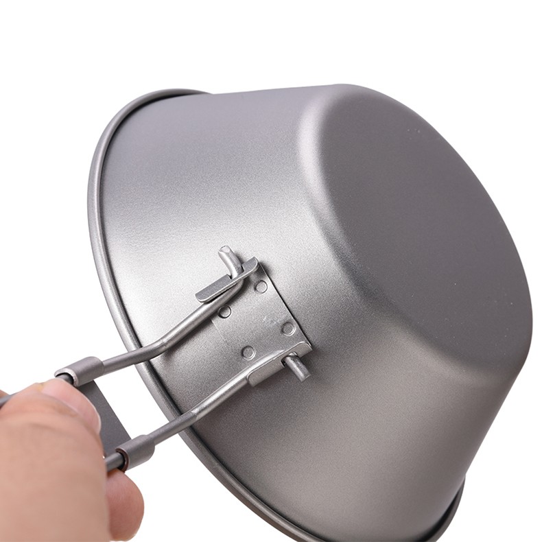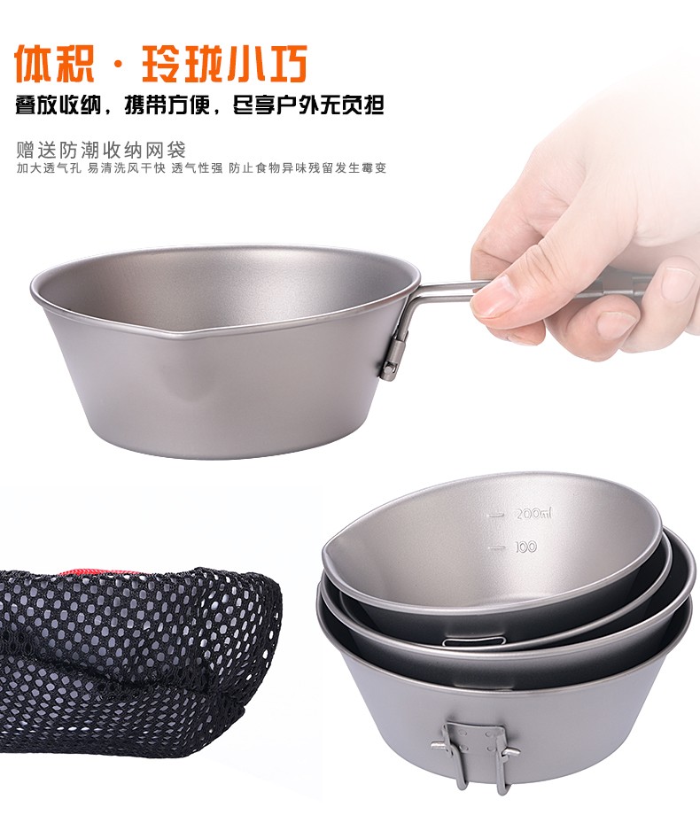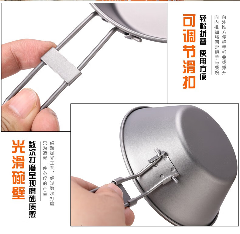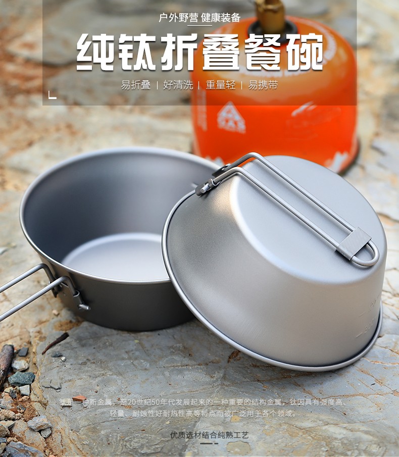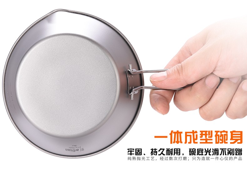 Ti artisan钛工匠纯钛单人钛碗隔热防烫户外套装野营野餐露营饭盒便携餐具 Ta8216-s折叠手柄450ml
