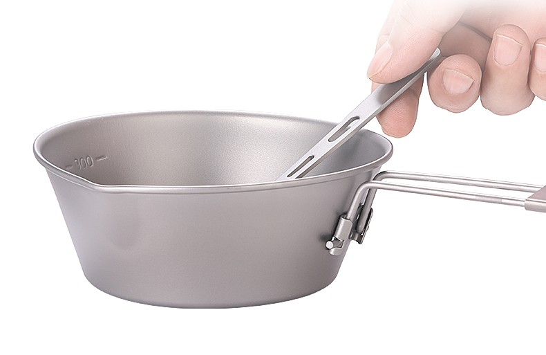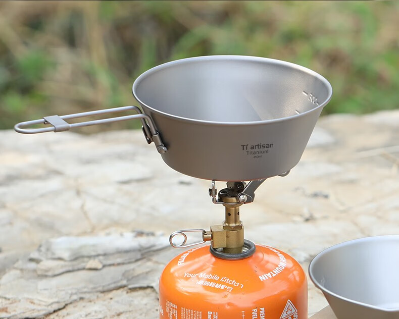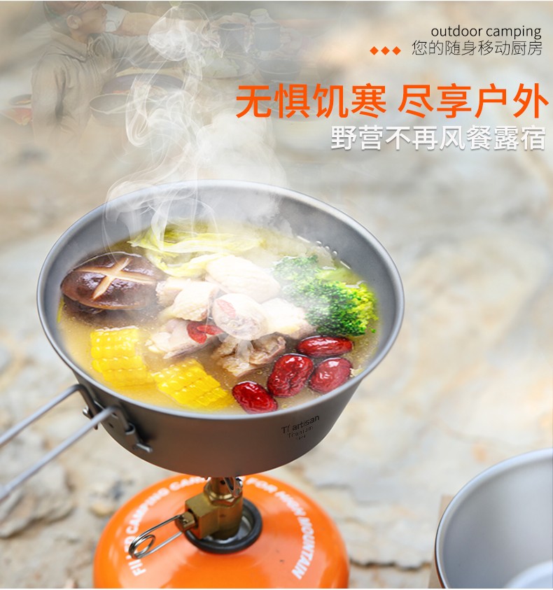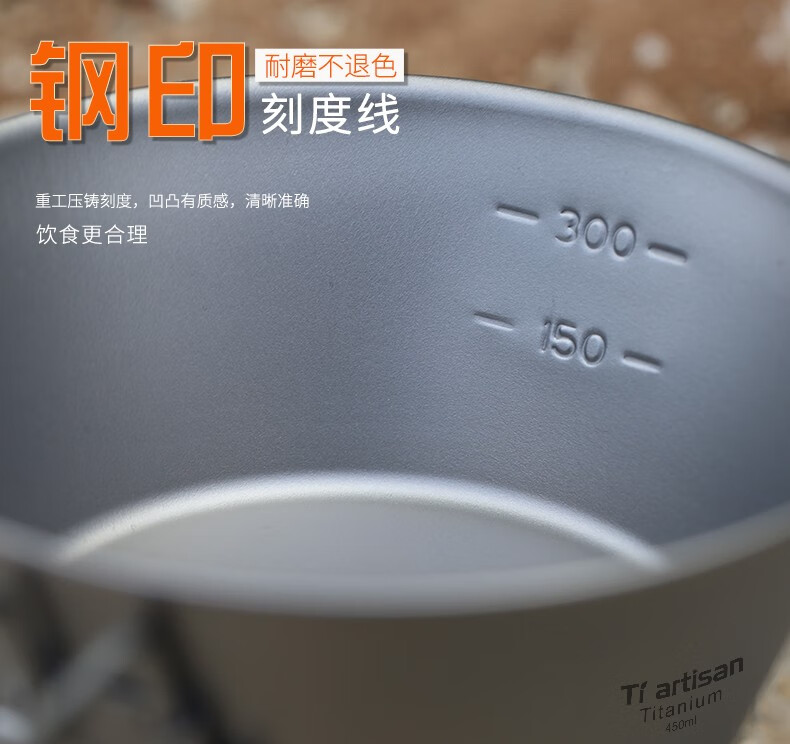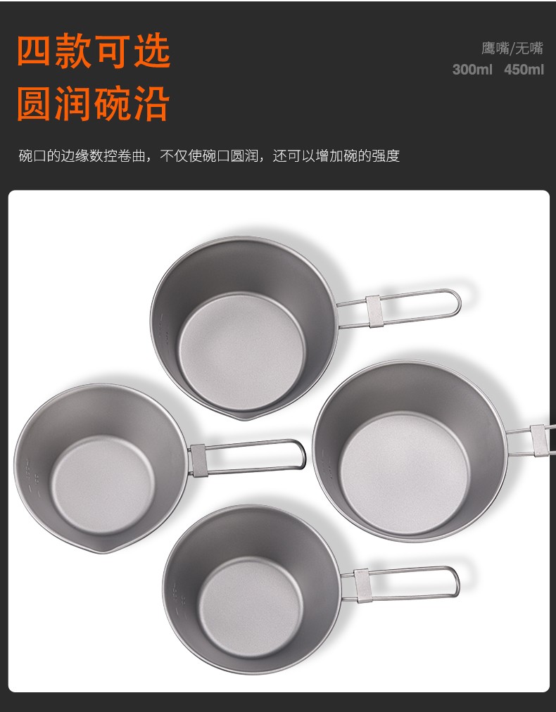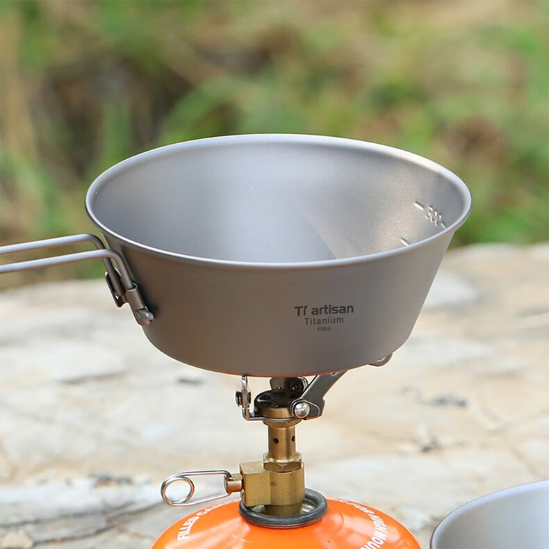 Ti artisan钛工匠纯钛单人钛碗隔热防烫户外套装野营野餐露营饭盒便携餐具 Ta8216-s折叠手柄450ml