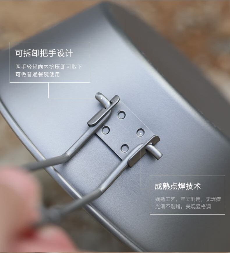轻量化很棒,把手阻断卡扣设计也还可以 可以用来吃饭喝水,洗完可以挂起来晾晒,比较方便户外活动使用 对北方人来说容量比较小,要添很多次饭