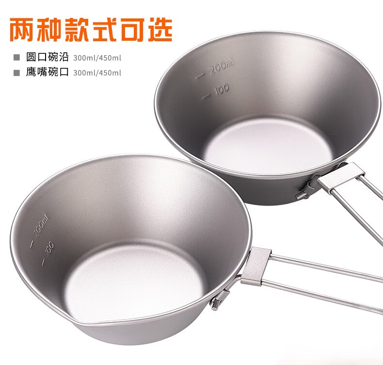 Ti artisan钛工匠户外纯钛沙拉碗单层可折叠手柄野营野炊旅行易携健康钛碗 坡度碗300ml小号无嘴