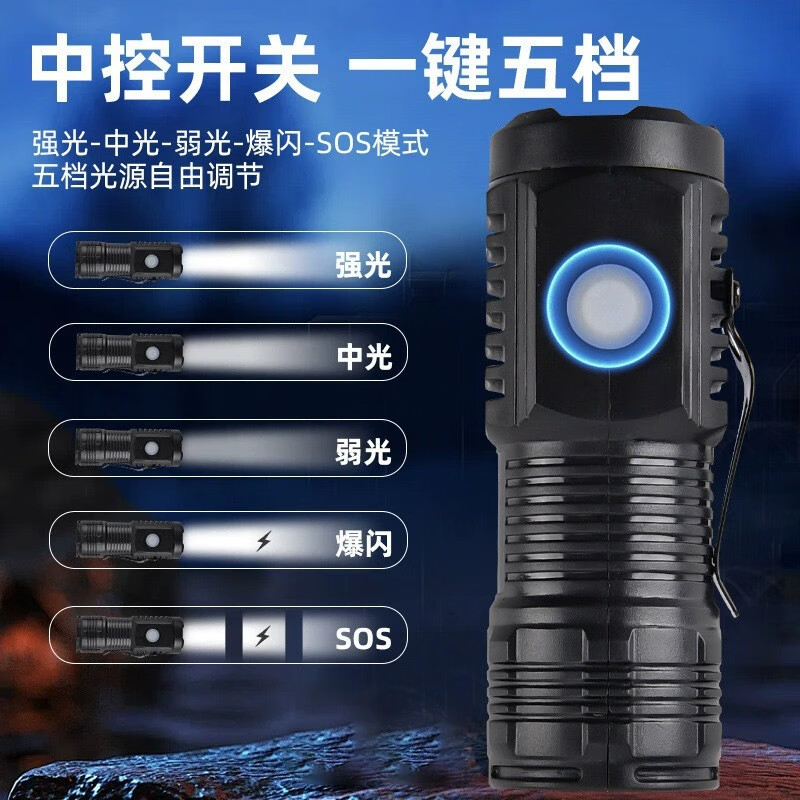 公牛适用强光手电筒可充电小型便携户外超亮远射应急耐家用LED灯 9900w普亮_伸缩变焦_智能电显_USB直充