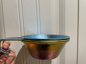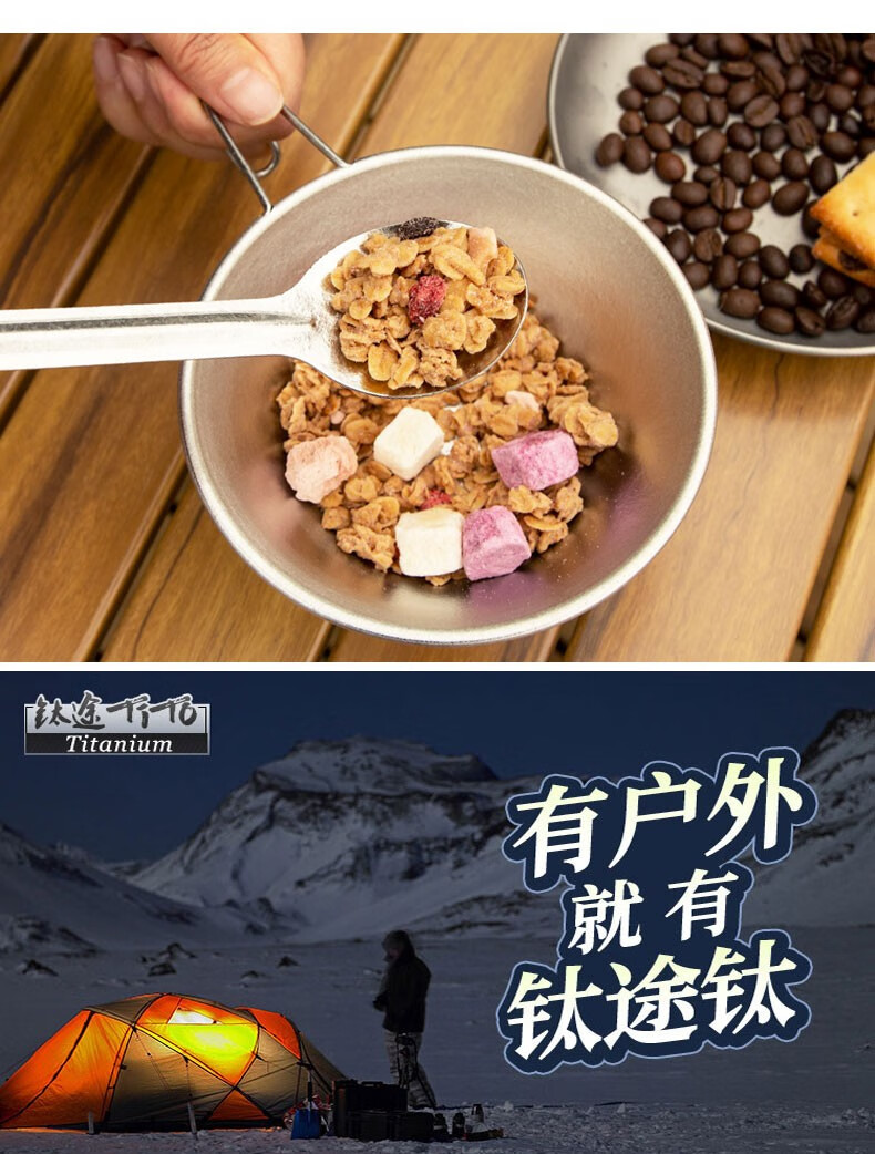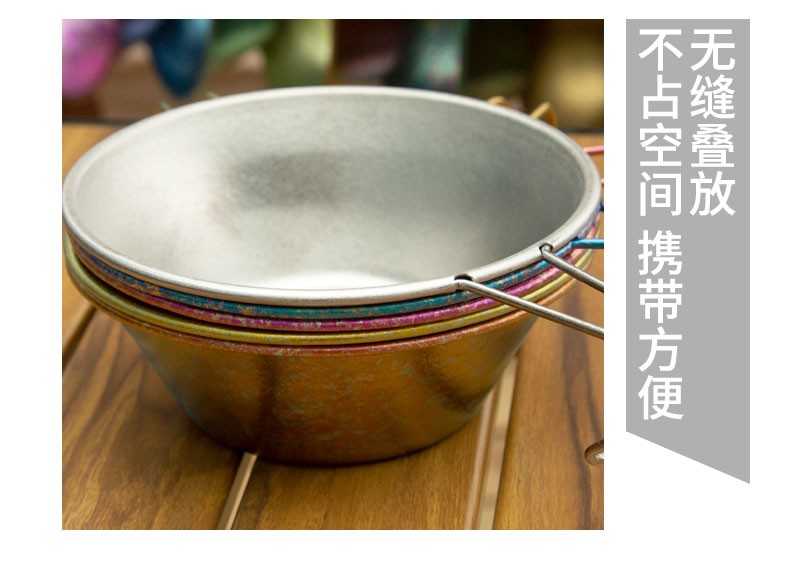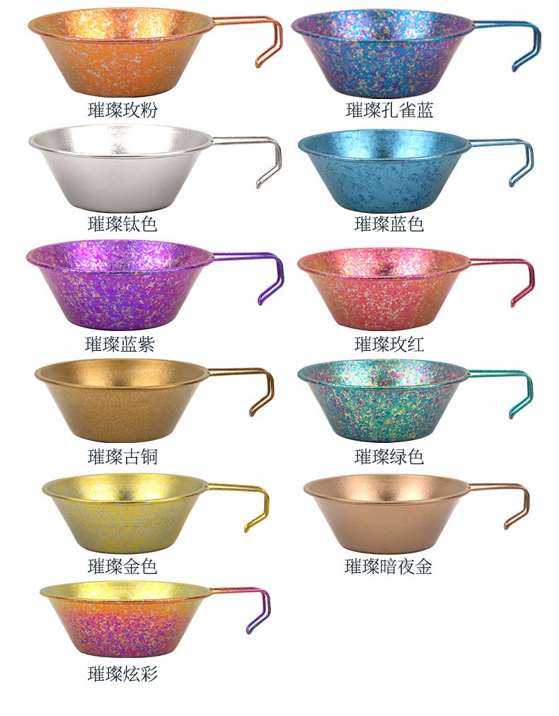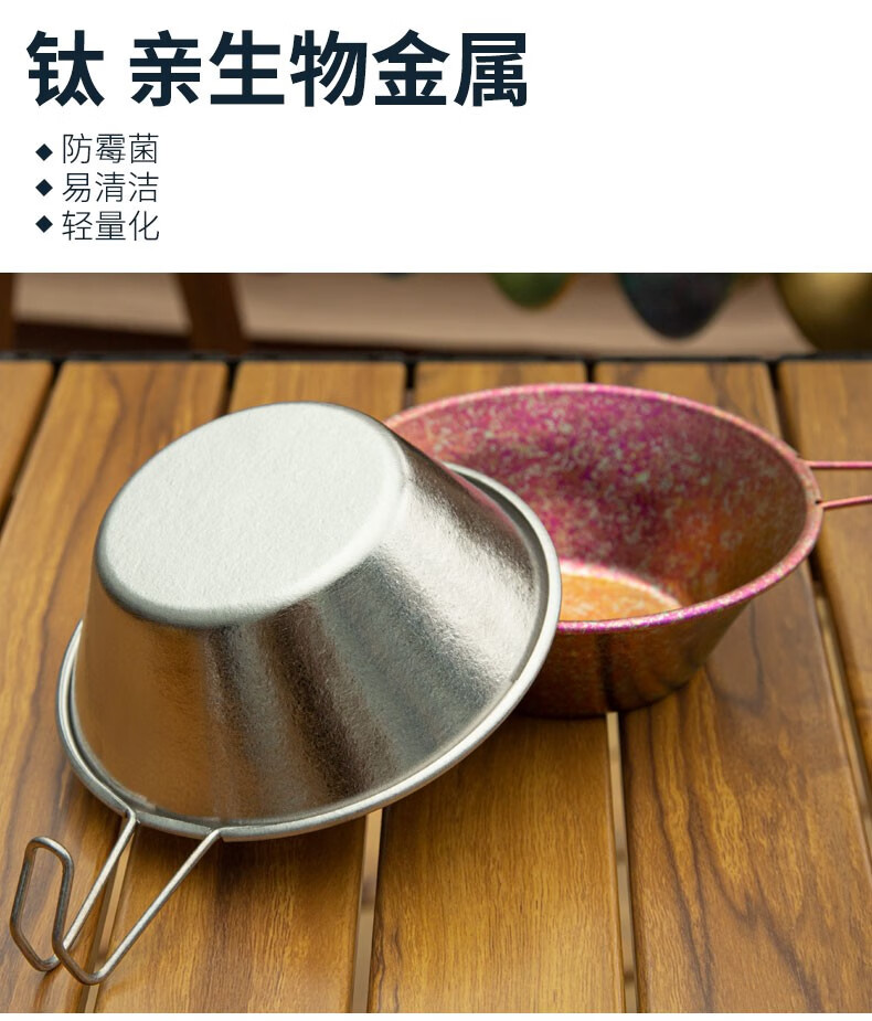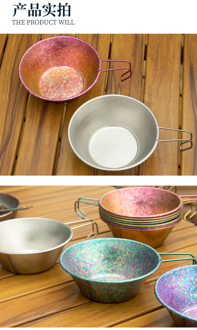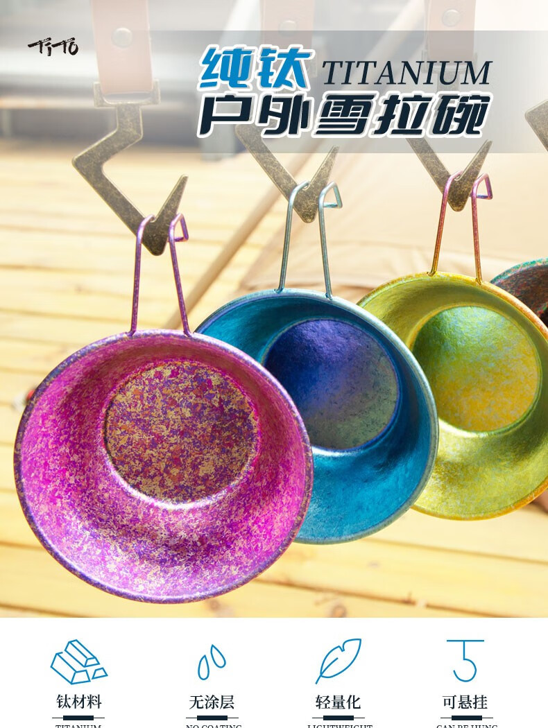 非常精致的雪拉碗,纯钛炫彩晶花,阳光下闪闪发亮,做营地最靓的仔,卫生安全,轻量便携,性价比高,值得入手!