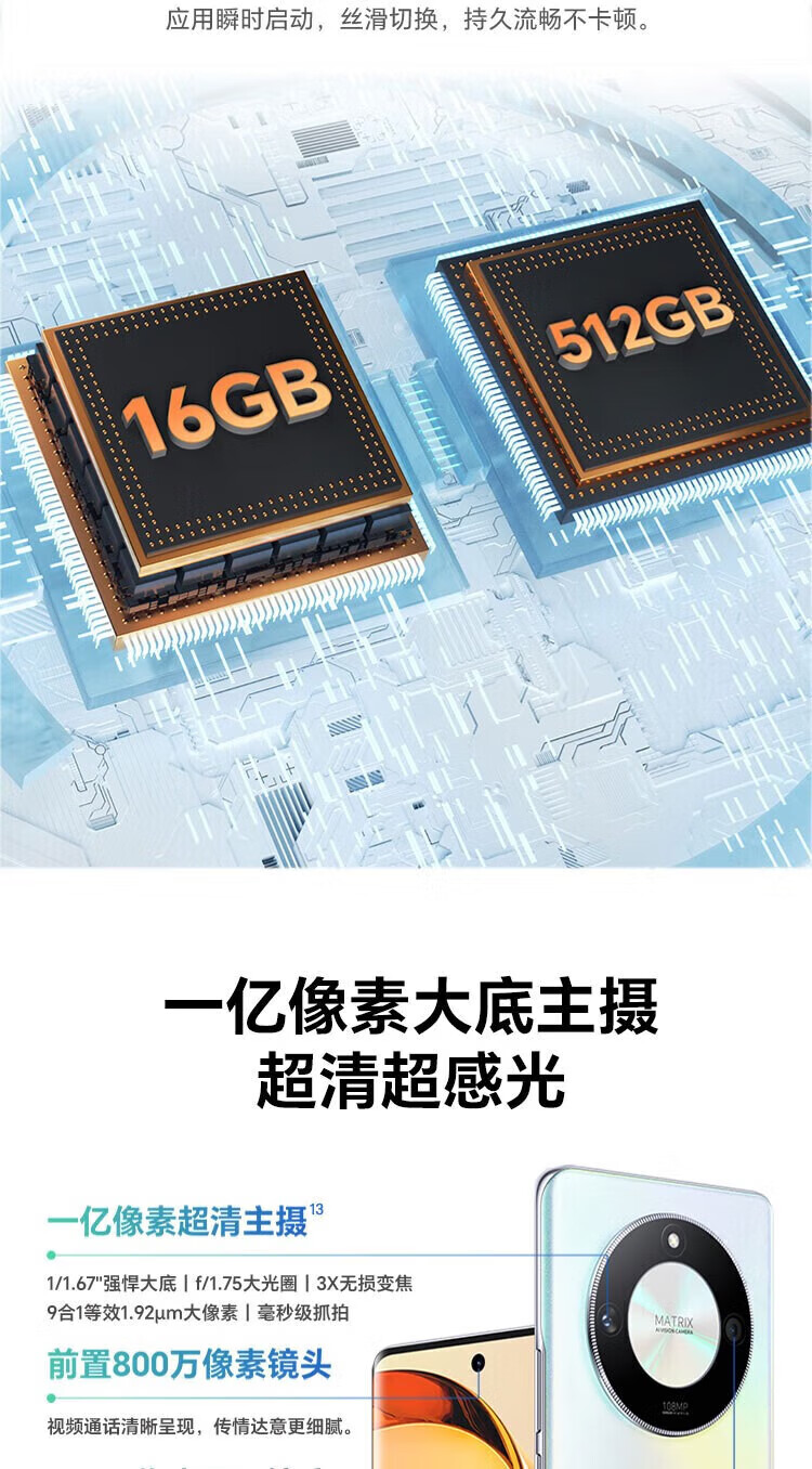 HONOR/荣耀 X50 1亿像素 1.5K超清LED幕大内存大电池5800mAh曲面屏拍照学生游戏全网通5G智能手机 典雅黑 16GB+512GB-5G标配 品牌快充+【店保一年】