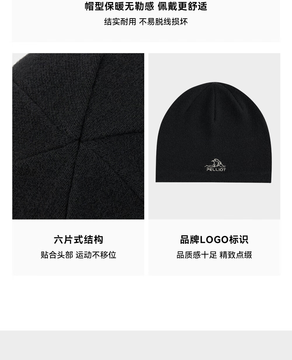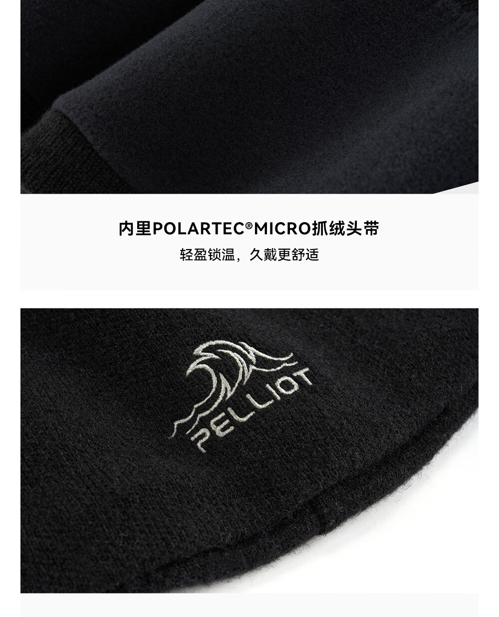 伯希和(Pelliot)【晴川】户外羊毛帽男女polartec跑步防风冷帽登山滑雪针织帽子 【男女同款】曜石黑 刺绣小logo