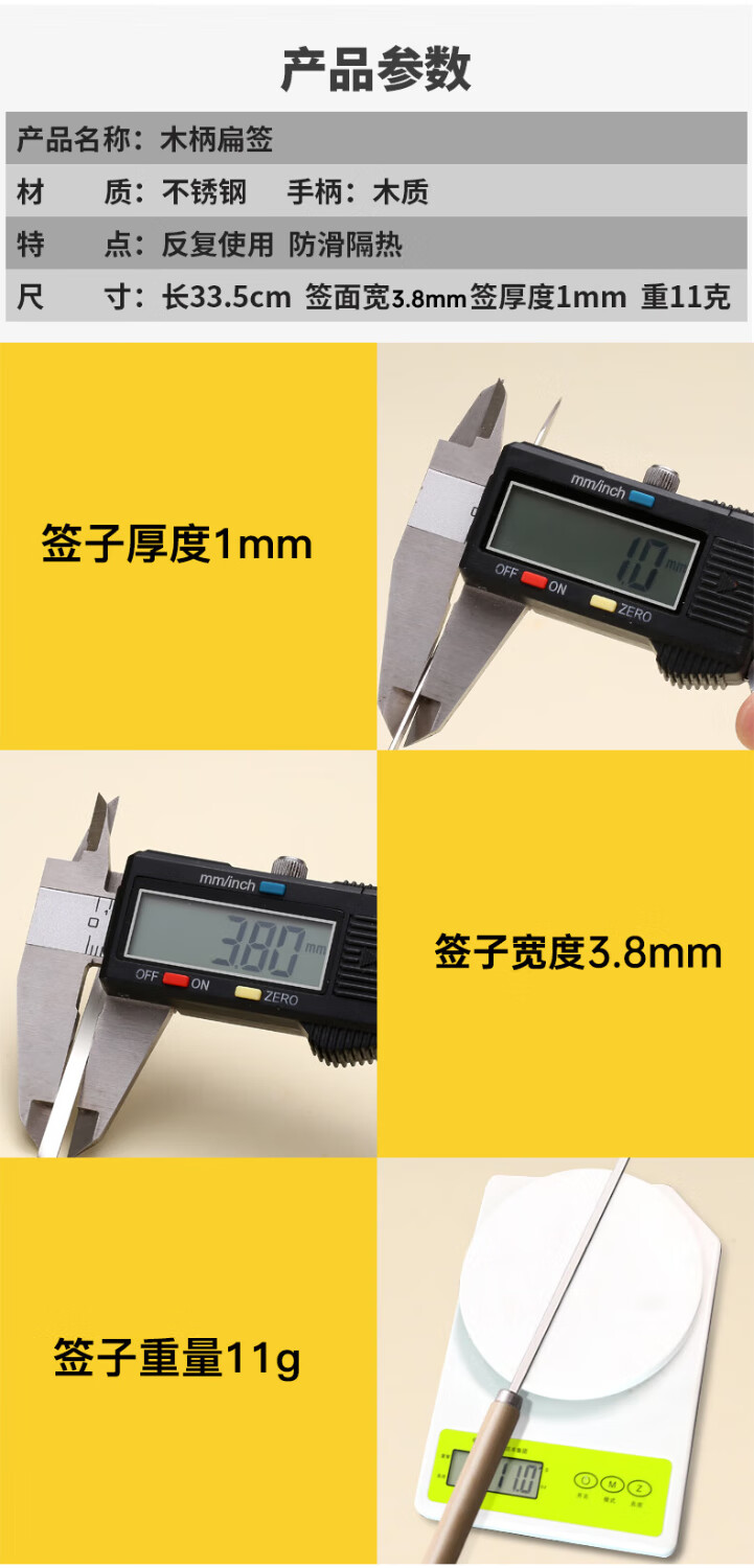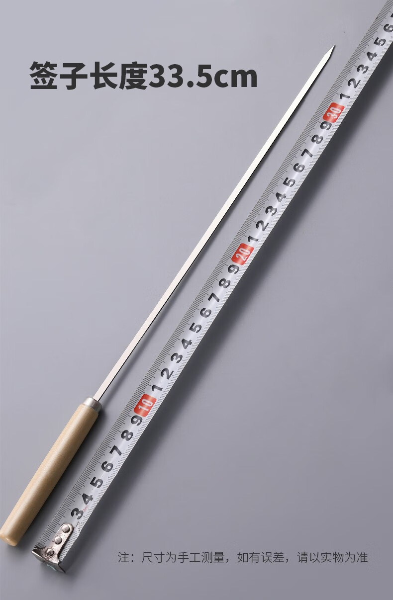 原始人木柄烧烤签子不锈钢羊肉串烤肉烤串工具钢扁签铁签字针用品 长33.5cm*宽4mm*厚1mm 40支