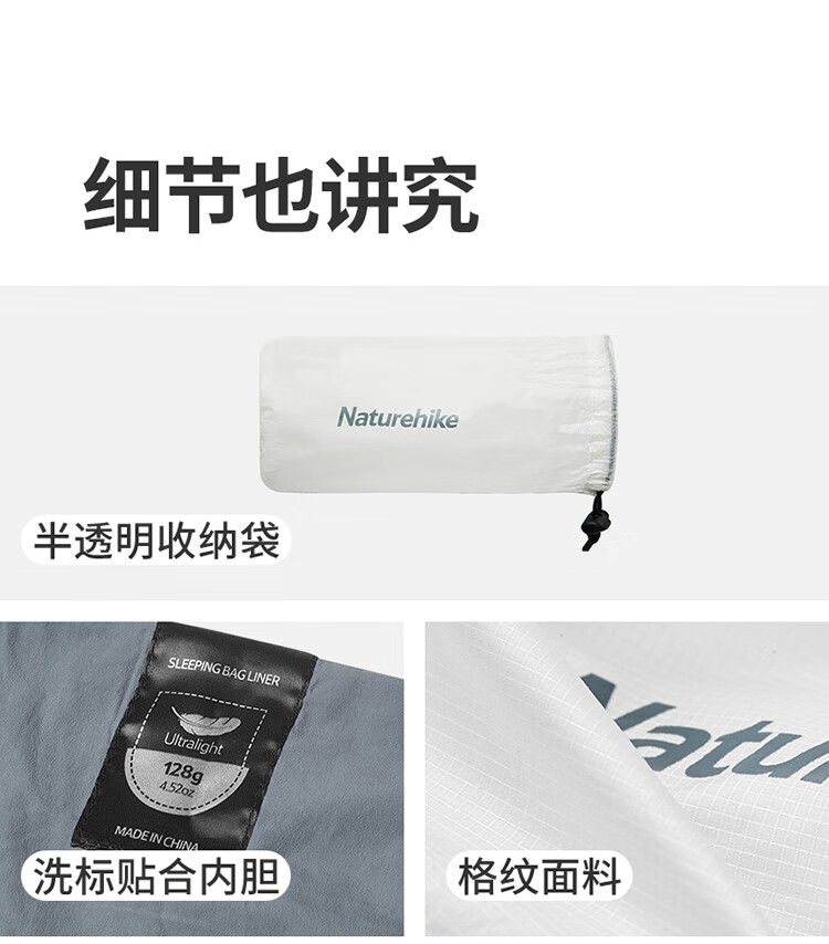 NaturehikeNatureHike挪客睡袋户外轻量化内胆成人露营夏季旅行旅游酒店睡眠 【超轻128g】徒步绿 送收纳袋