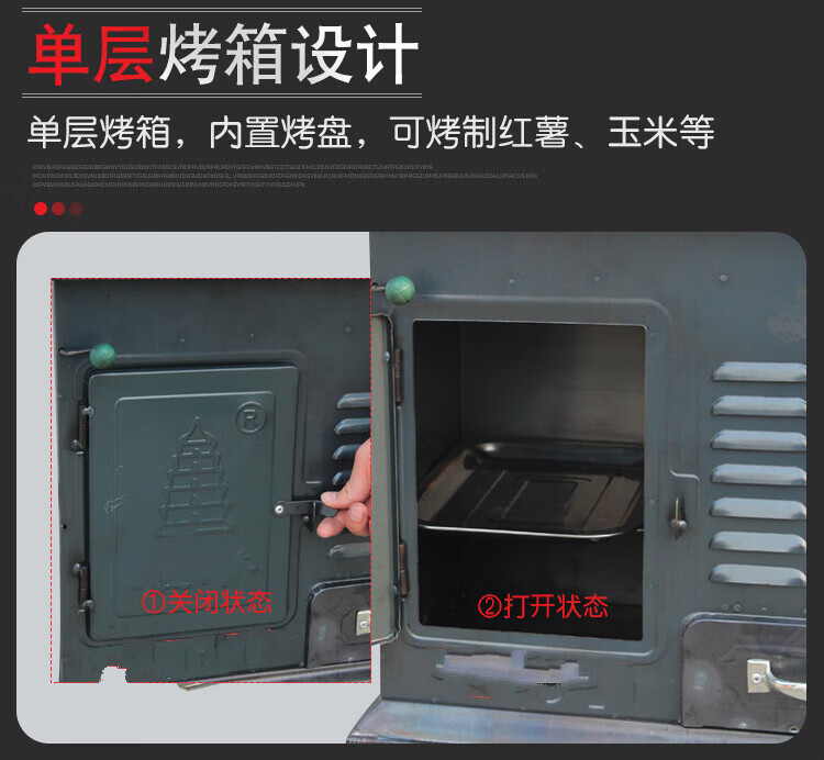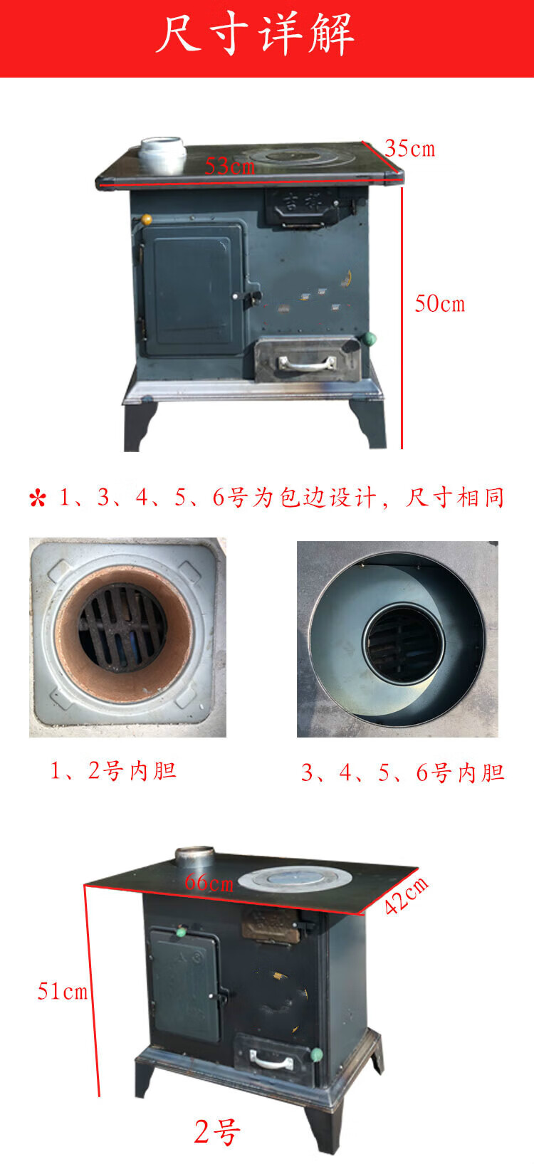 柏潮新型柴火炉灶取暖炉无炉加厚农村家用取暖柴煤炭炉通炕做饭室内 弯头篦子钩子三件套 宽30/长50做饭烧水取暖80平方