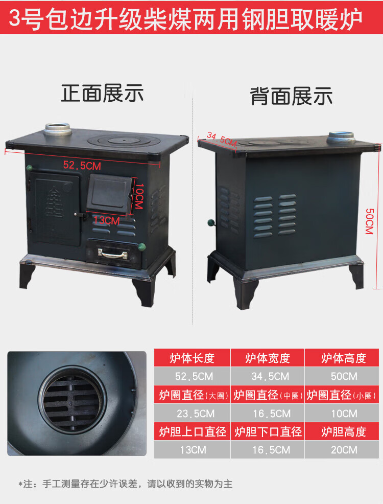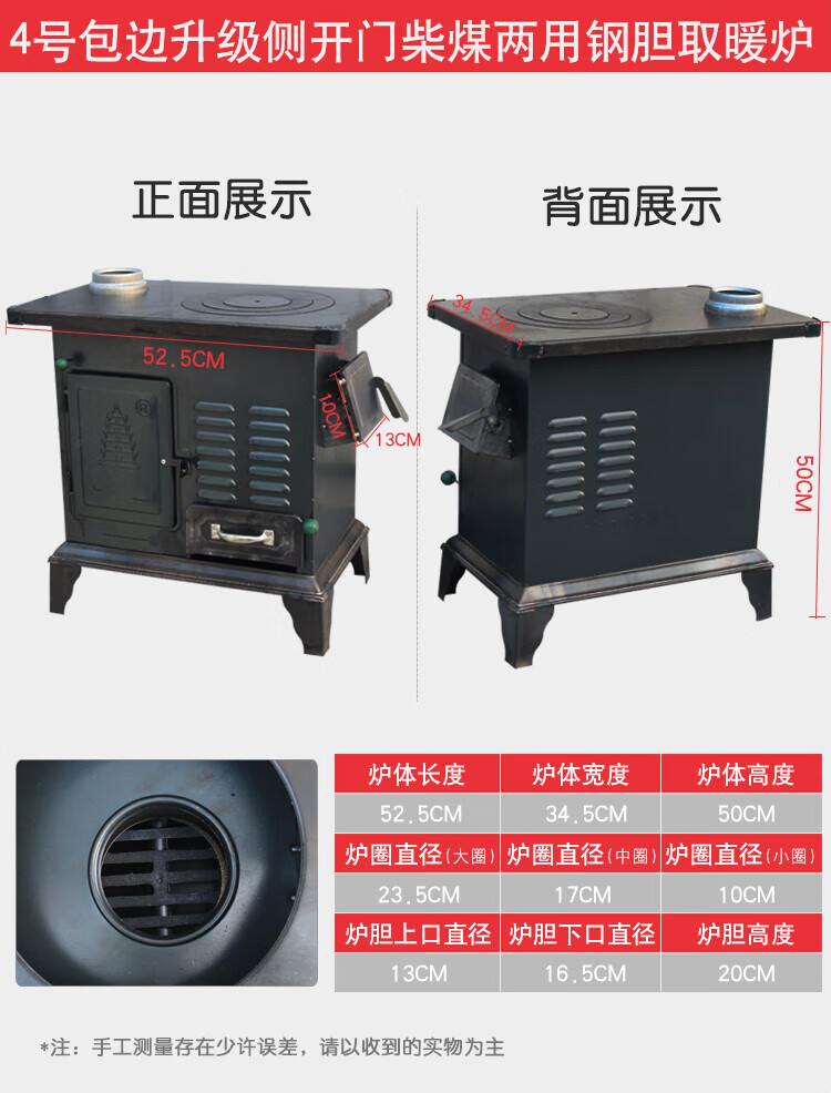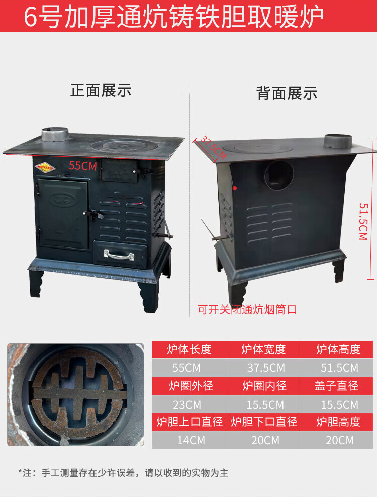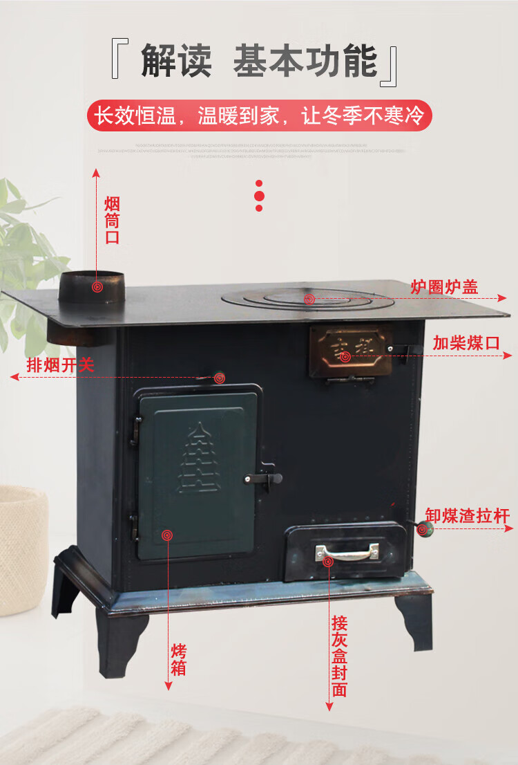 玮贤冬季新款柴煤两用取暖炉农村家用燃煤炉子室内烤火炉采暖炉柴火炉 6号炉钢胆侧开门