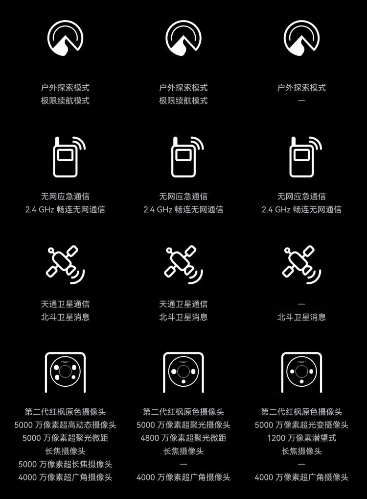 卫星通话,高频PWM调光,全焦段影像,防水防尘,无线充电,NFC