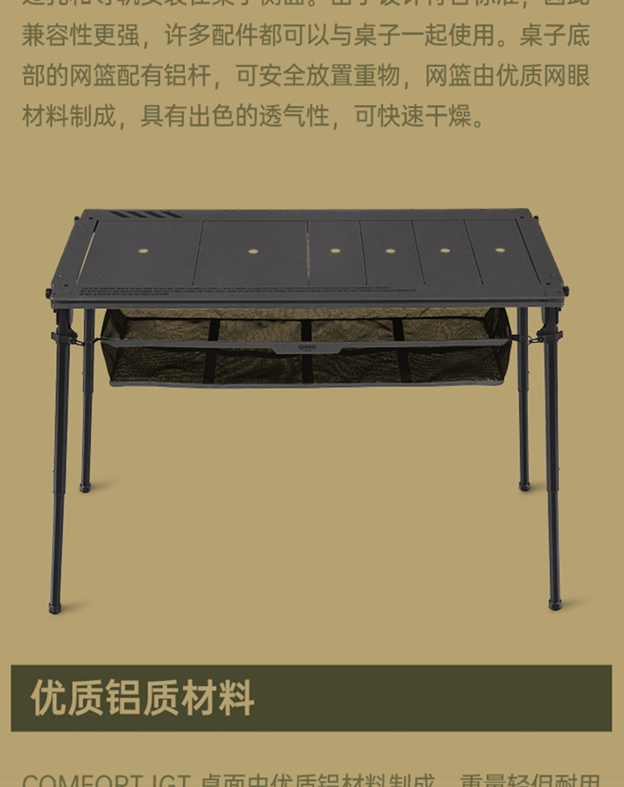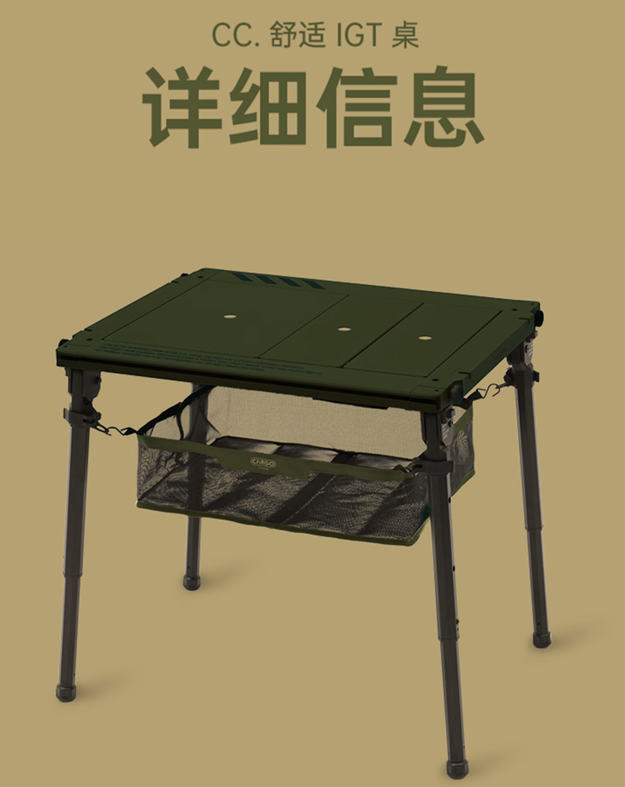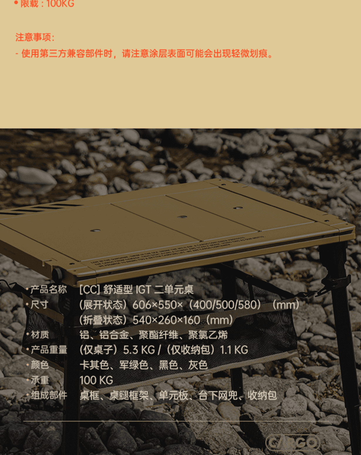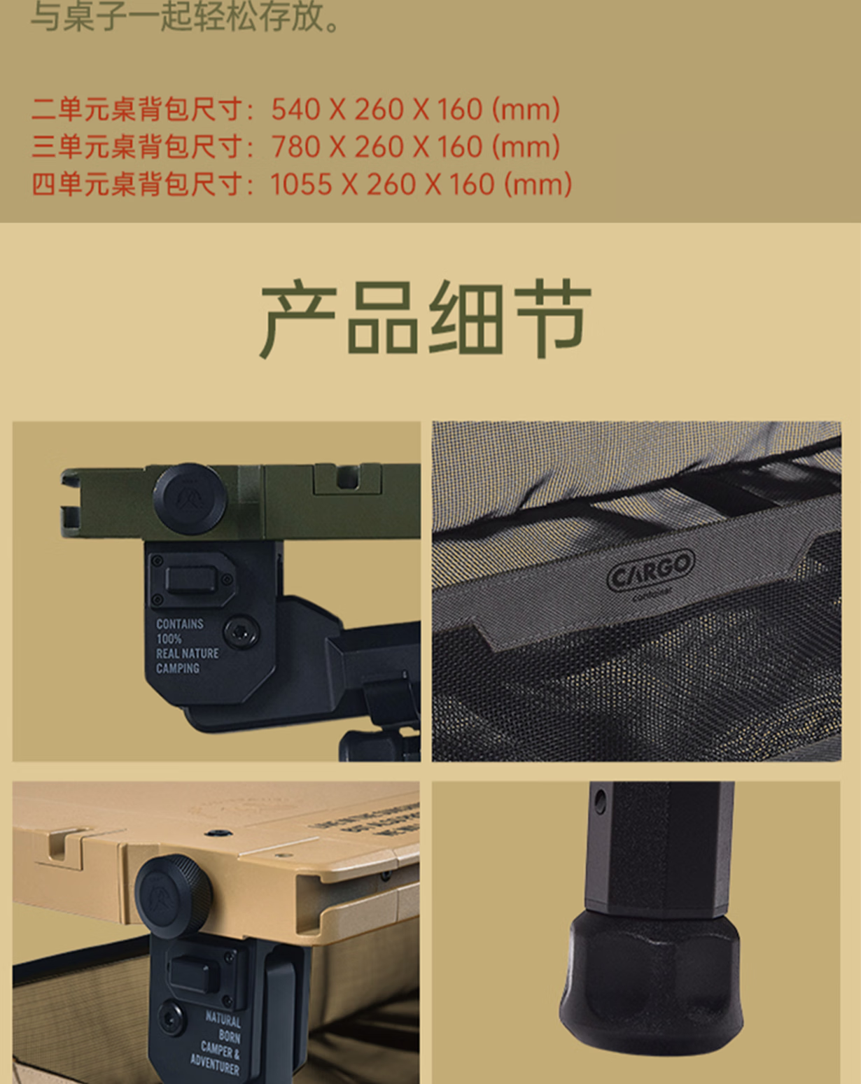 CARGO CONTAINER韩国三片户外露营便携可调节多功能铝合金折叠桌 可调节三片桌 卡其色