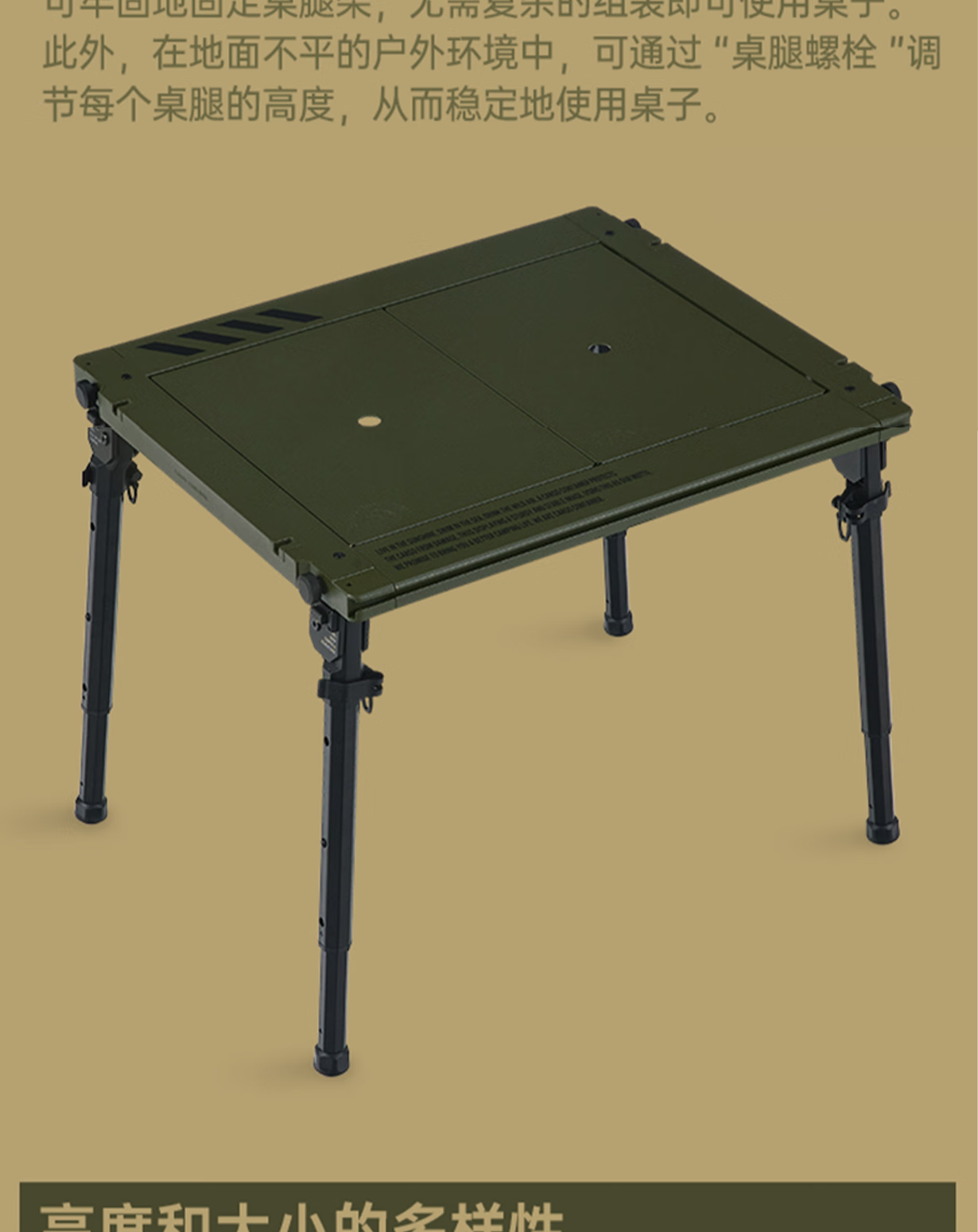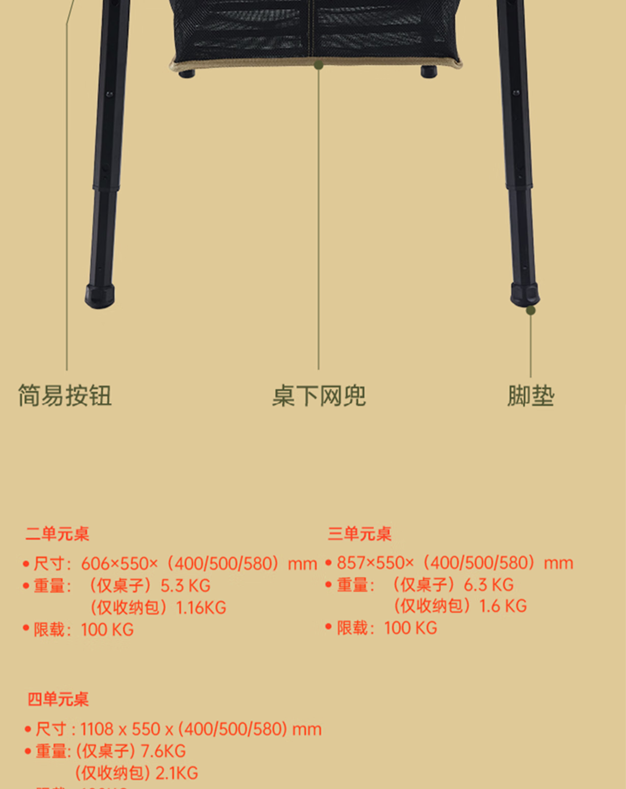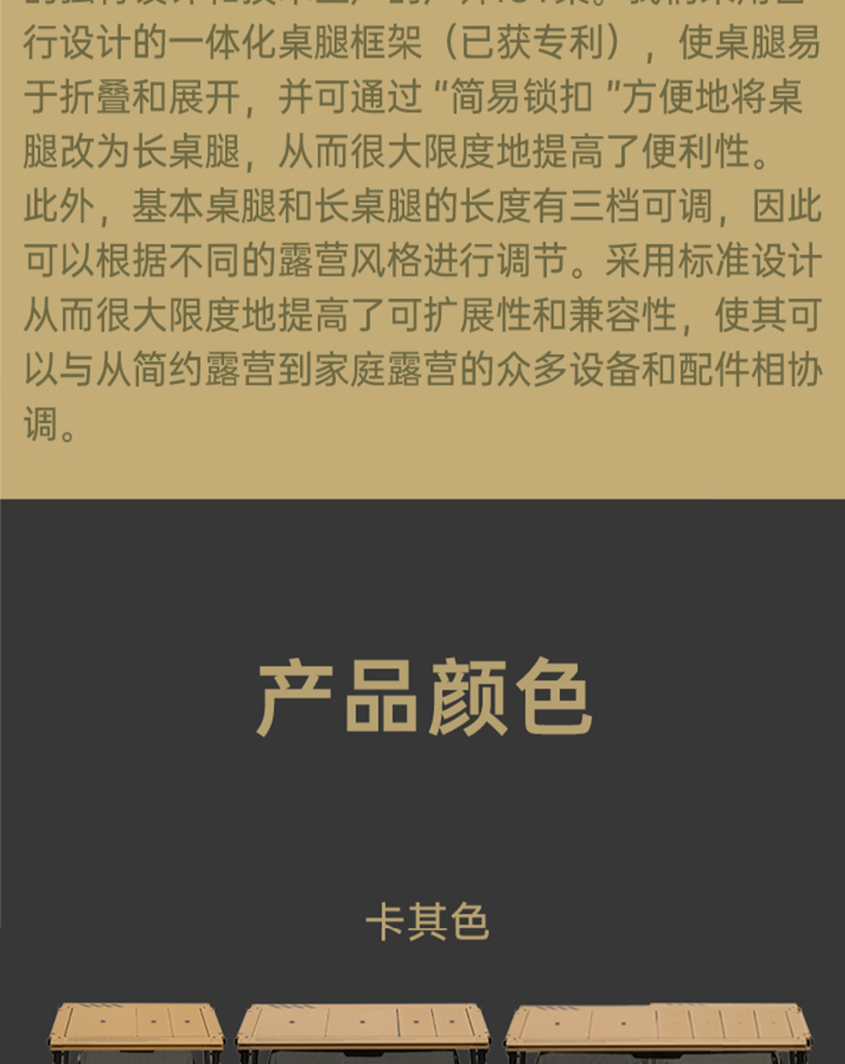 CARGO CONTAINER韩国三片户外露营便携可调节多功能铝合金折叠桌 可调节三片桌 卡其色
