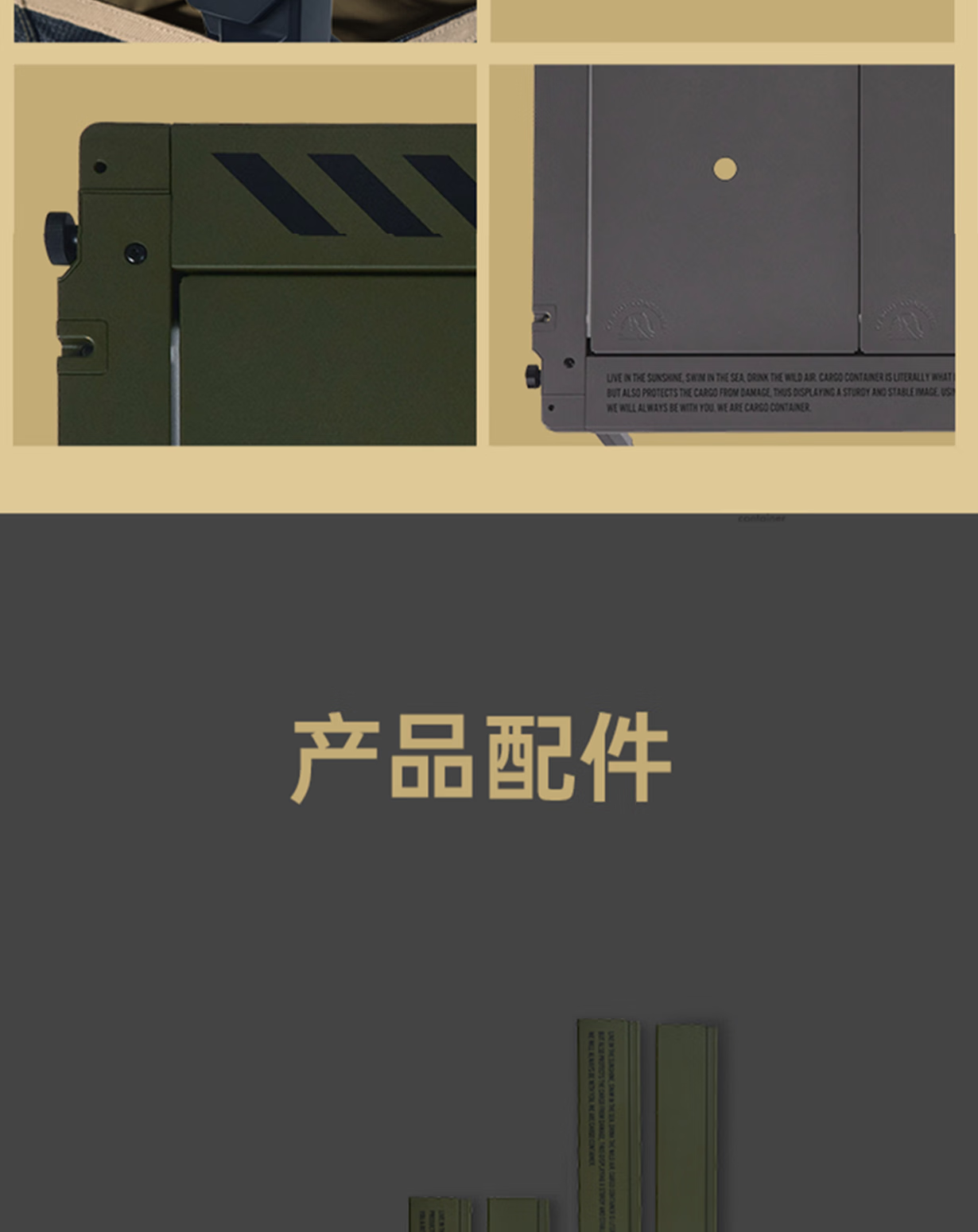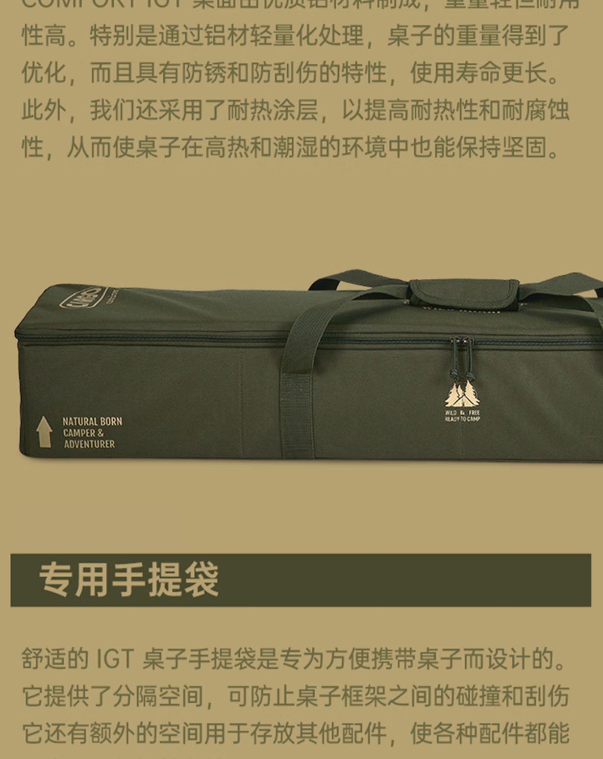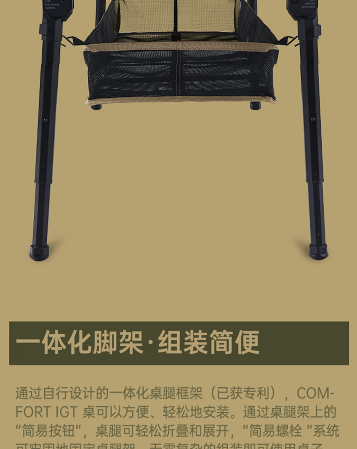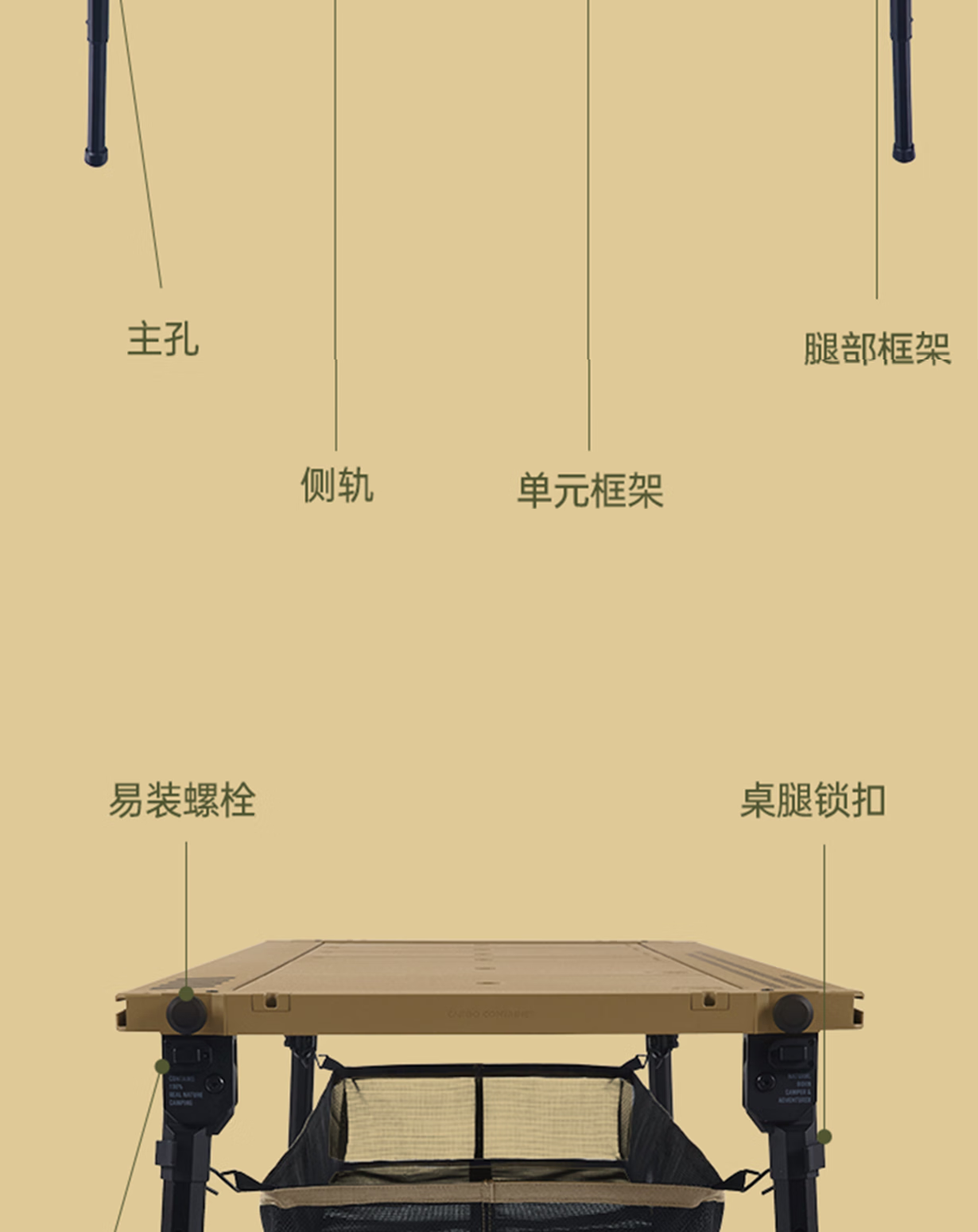 CARGO CONTAINER韩国三片户外露营便携可调节多功能铝合金折叠桌 可调节三片桌 卡其色