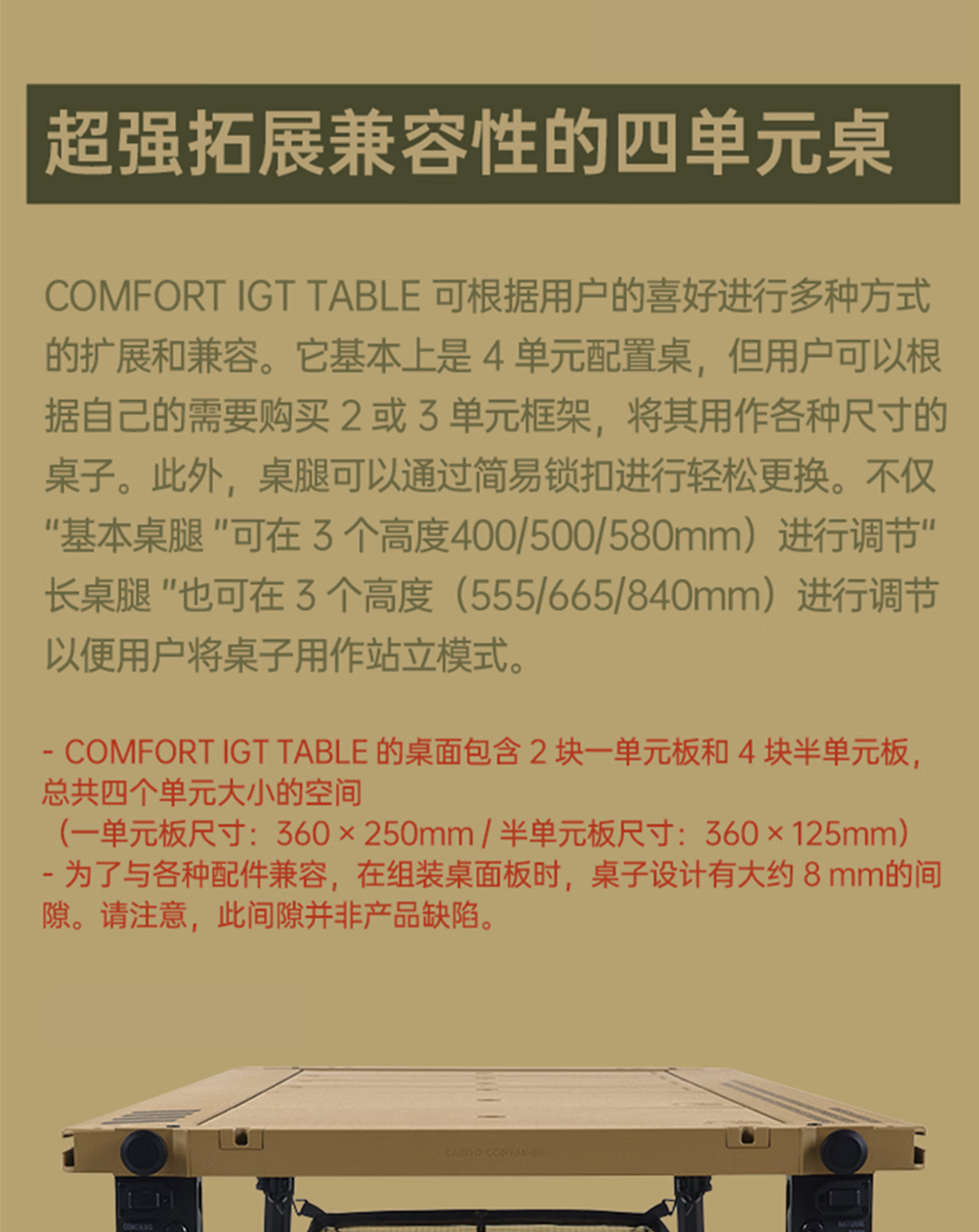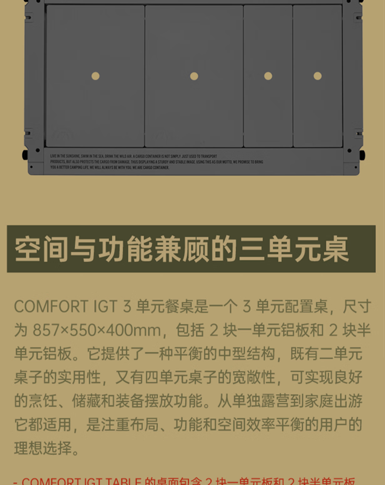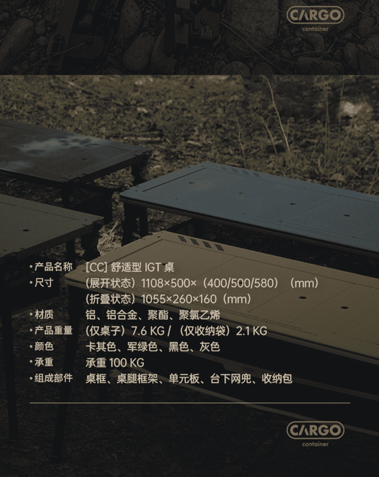 CARGO CONTAINER韩国CARGO户外IGT桌可拆卸升降二单元/三单元套装铝合金框架桌 灰色三单元套装 无规格