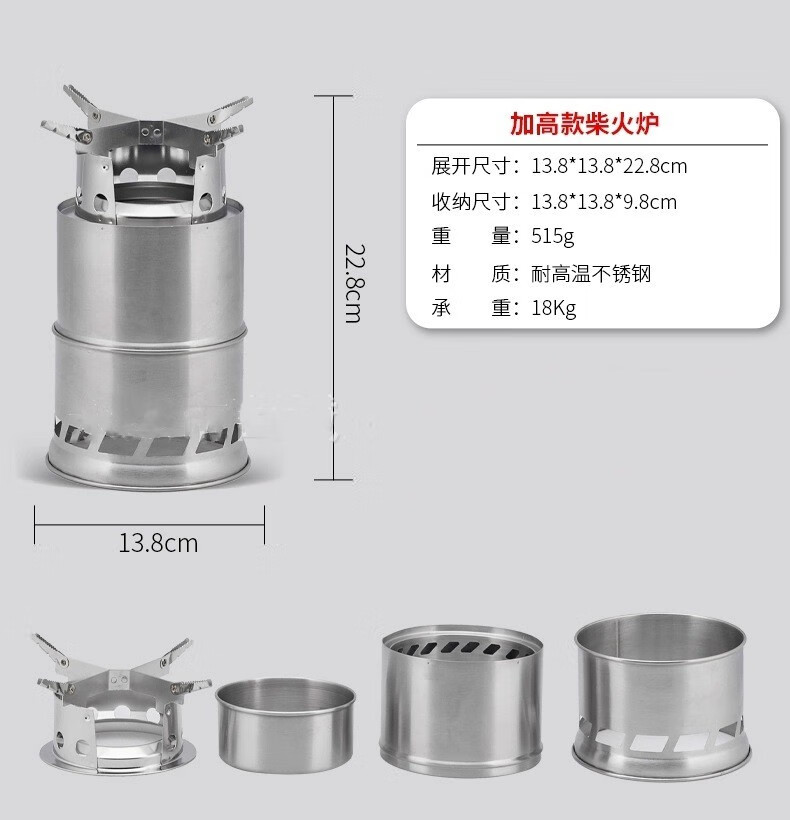 西盒 柴火炉户外便携焚火炉小型木炭烤火露营野炊烧烤不锈钢折叠简易 大号柴火炉配烤网