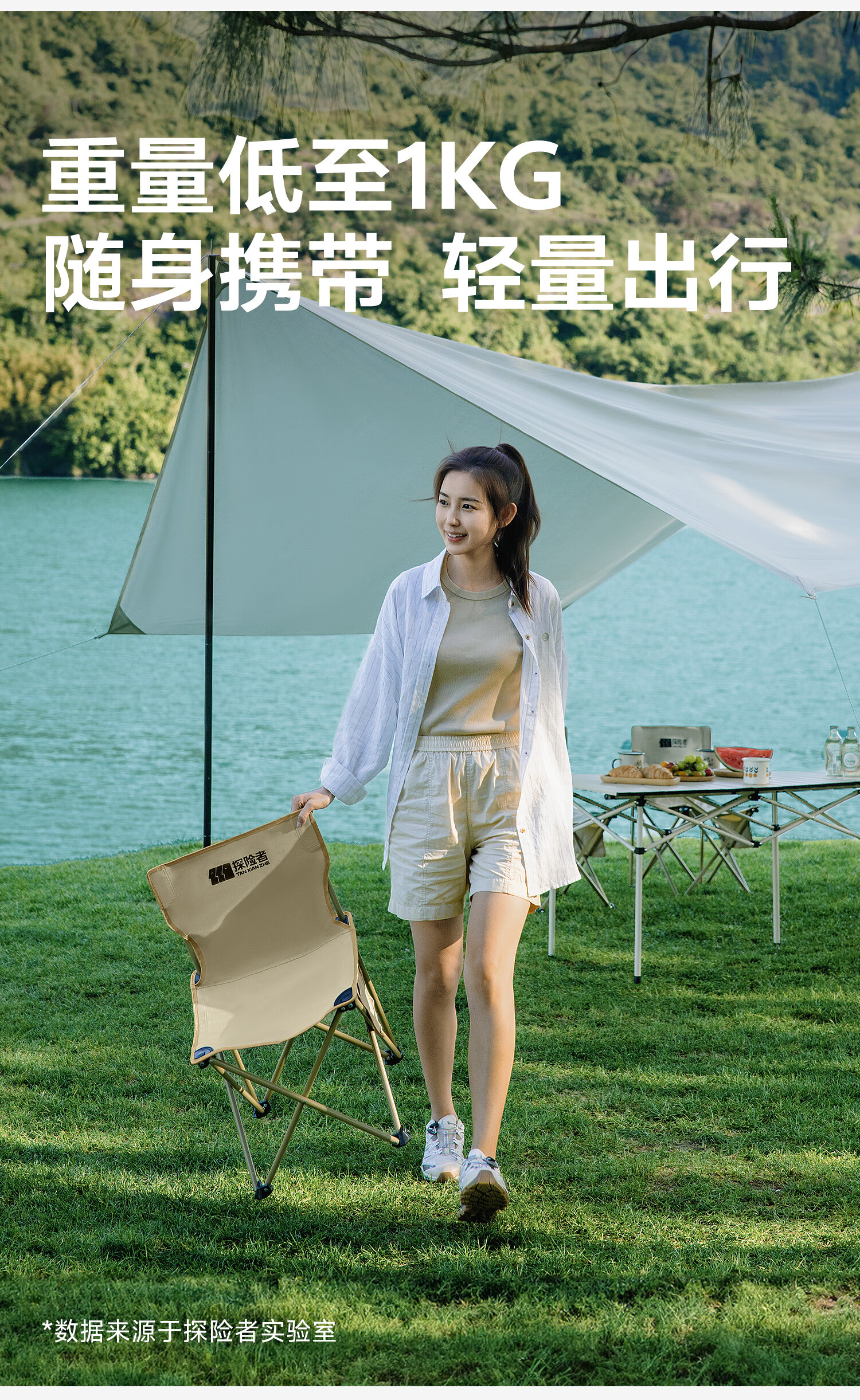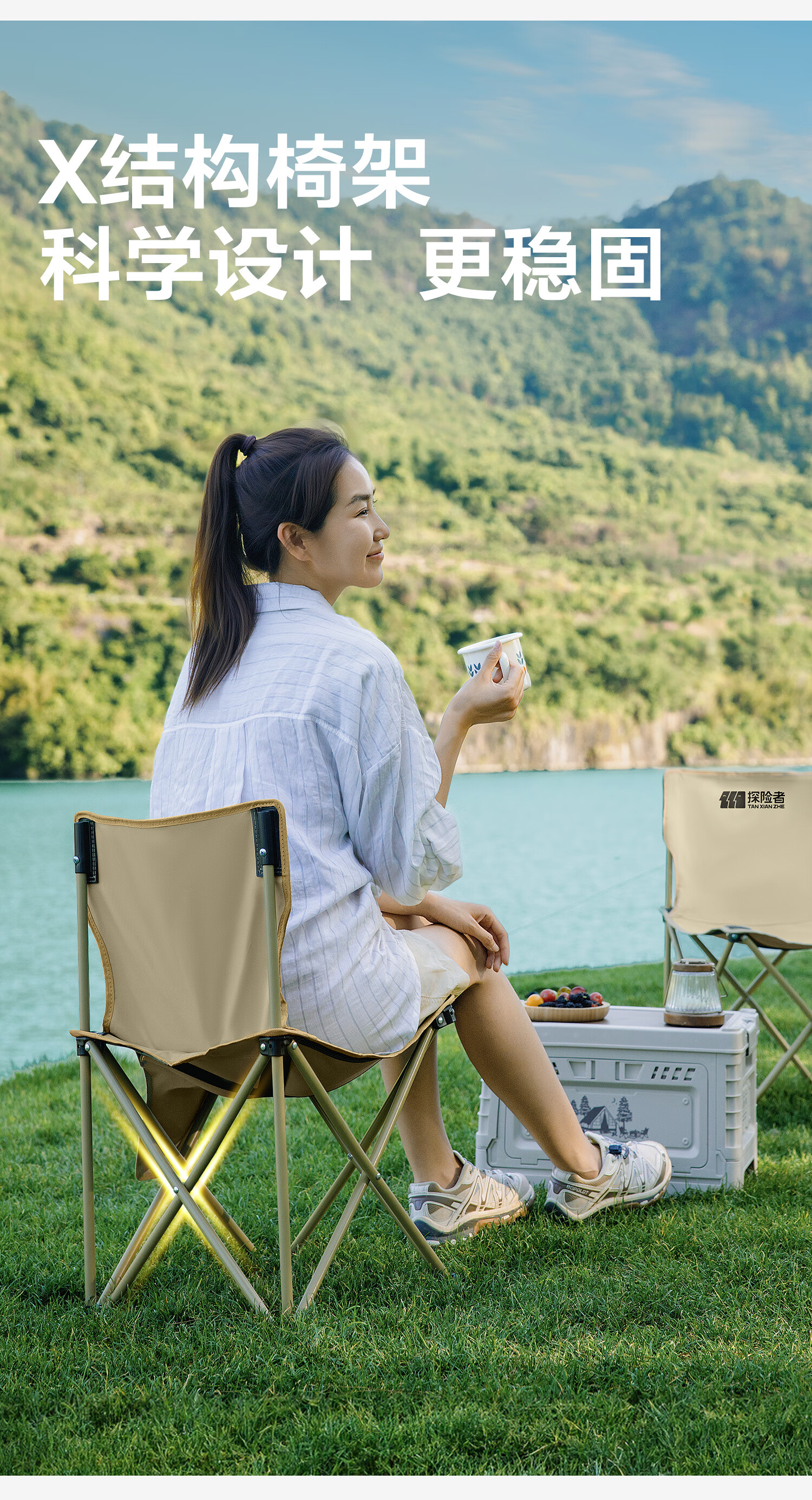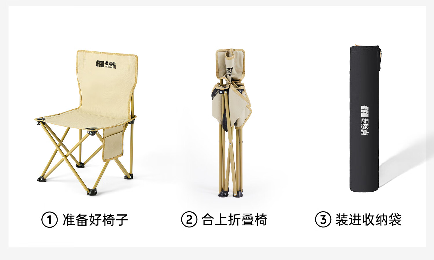 探险者(TAN XIAN ZHE)户外折叠椅野餐露营椅便携式板凳钓鱼椅沙滩马扎高靠背写生小椅子 【特大号-卡其色】双层加厚椅面/免安装设计