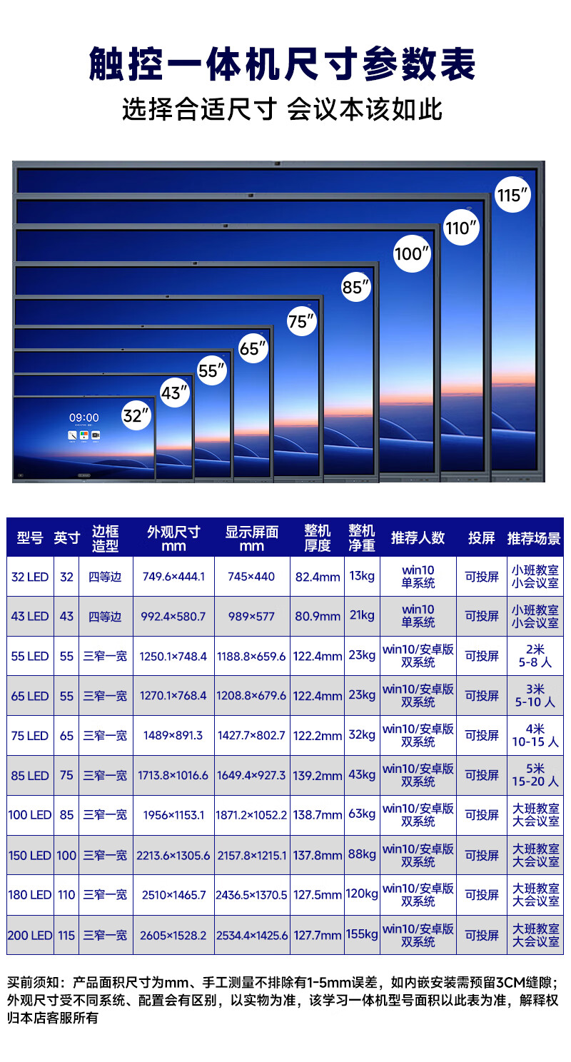 会议一体机教学家用多媒体触控屏电子白板智能投屏办公4K超清智慧屏教学触摸一体机55/65/75/85/100英寸 100LED触摸一体机+移动推车+运费险+包安装 单系统W10【i5/8+256G】教