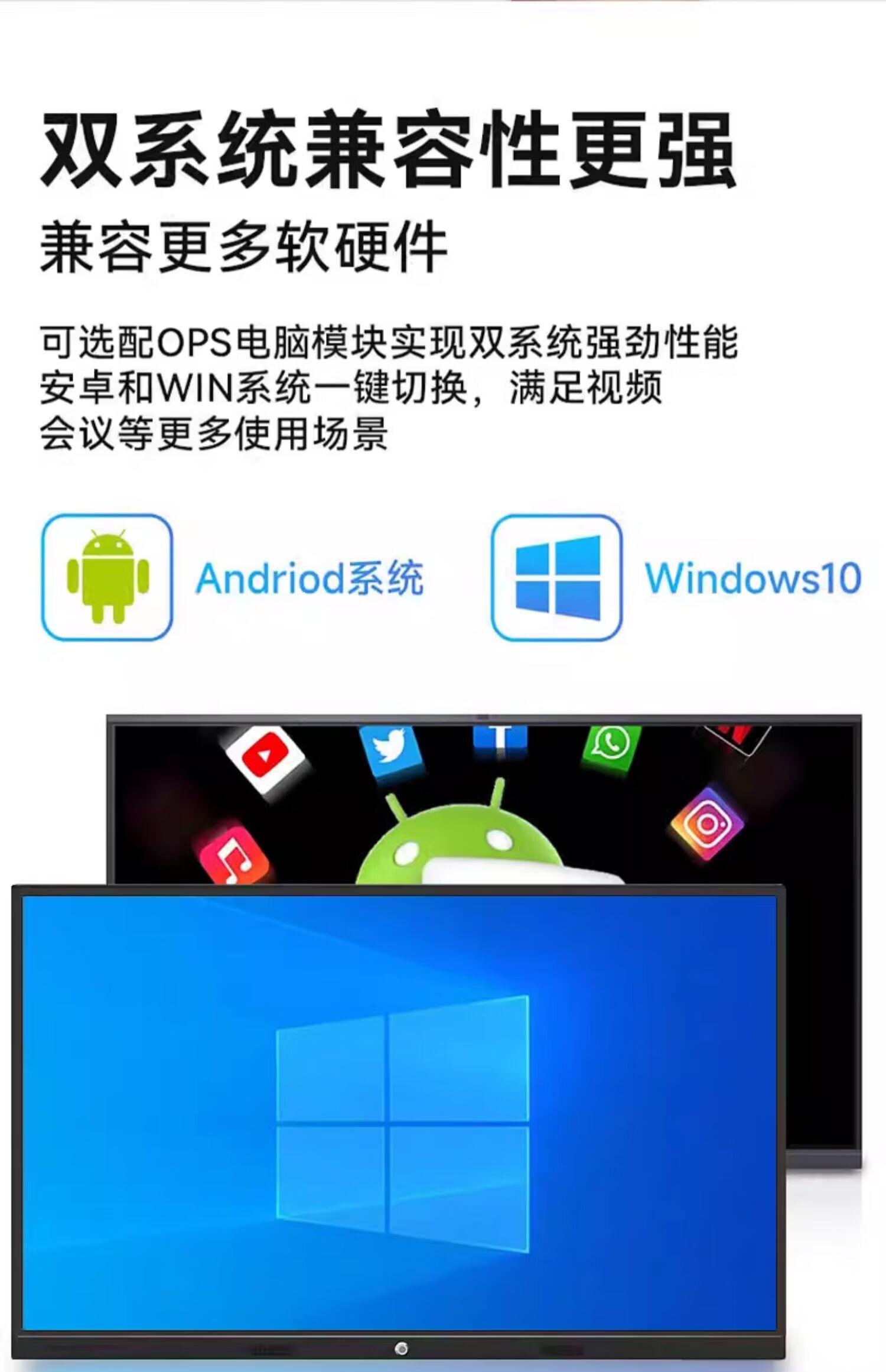 黑米白板一体机100寸86寸75寸65寸触屏智能电视会议大屏显示器 100寸8十256双系统