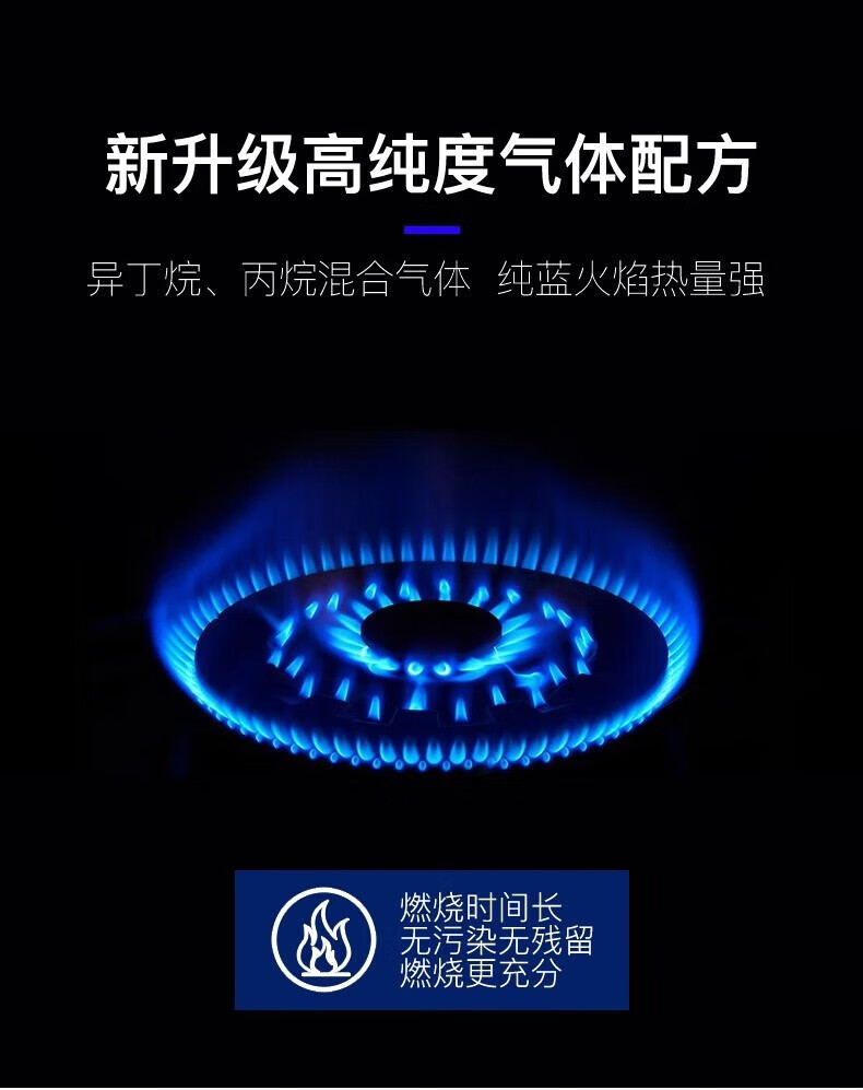 一直用的都是小蓝罐,买的跟上次买的长得不太一样,但是使用应该都一样没啥不同的。安装拆卸都比较方便,特别适合出去野炊的时候烧茶、煮火锅使用。一次应该能使用差不多两个小时吧