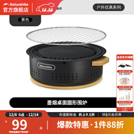 挪客Naturehike墨烟桌面圆形围炉煮茶烧烤炉家用室内户外烧烤烤火炉 黑色/煎烤两用款