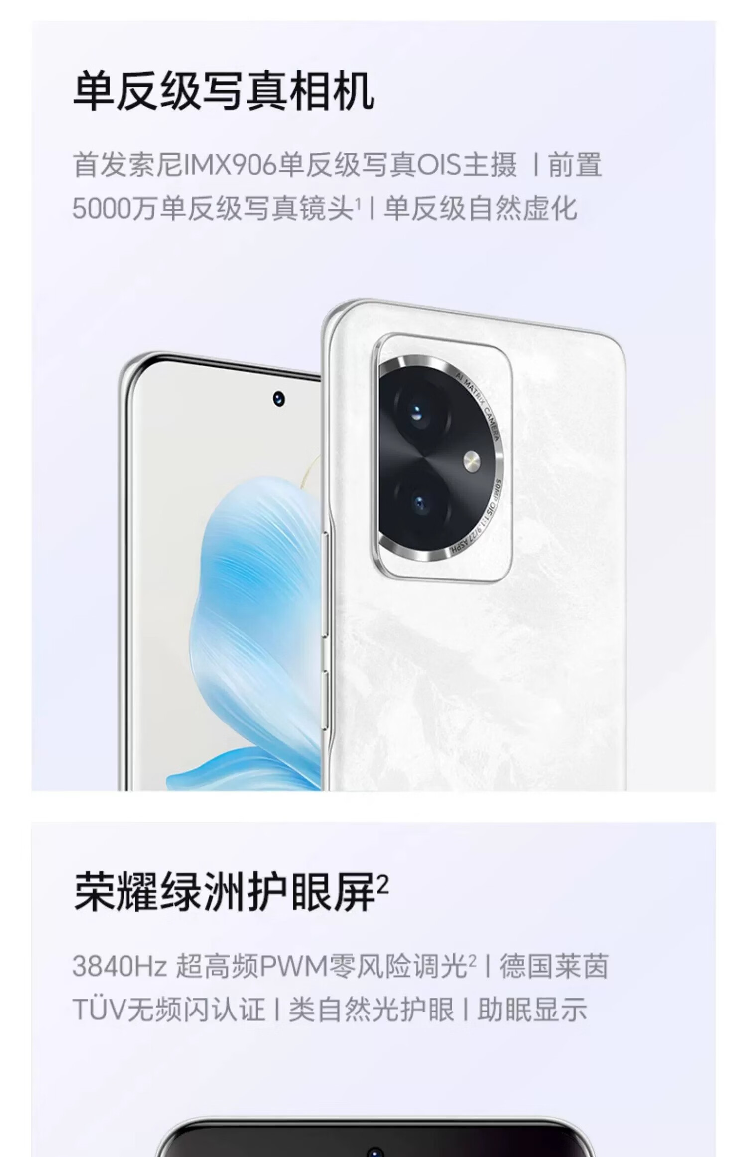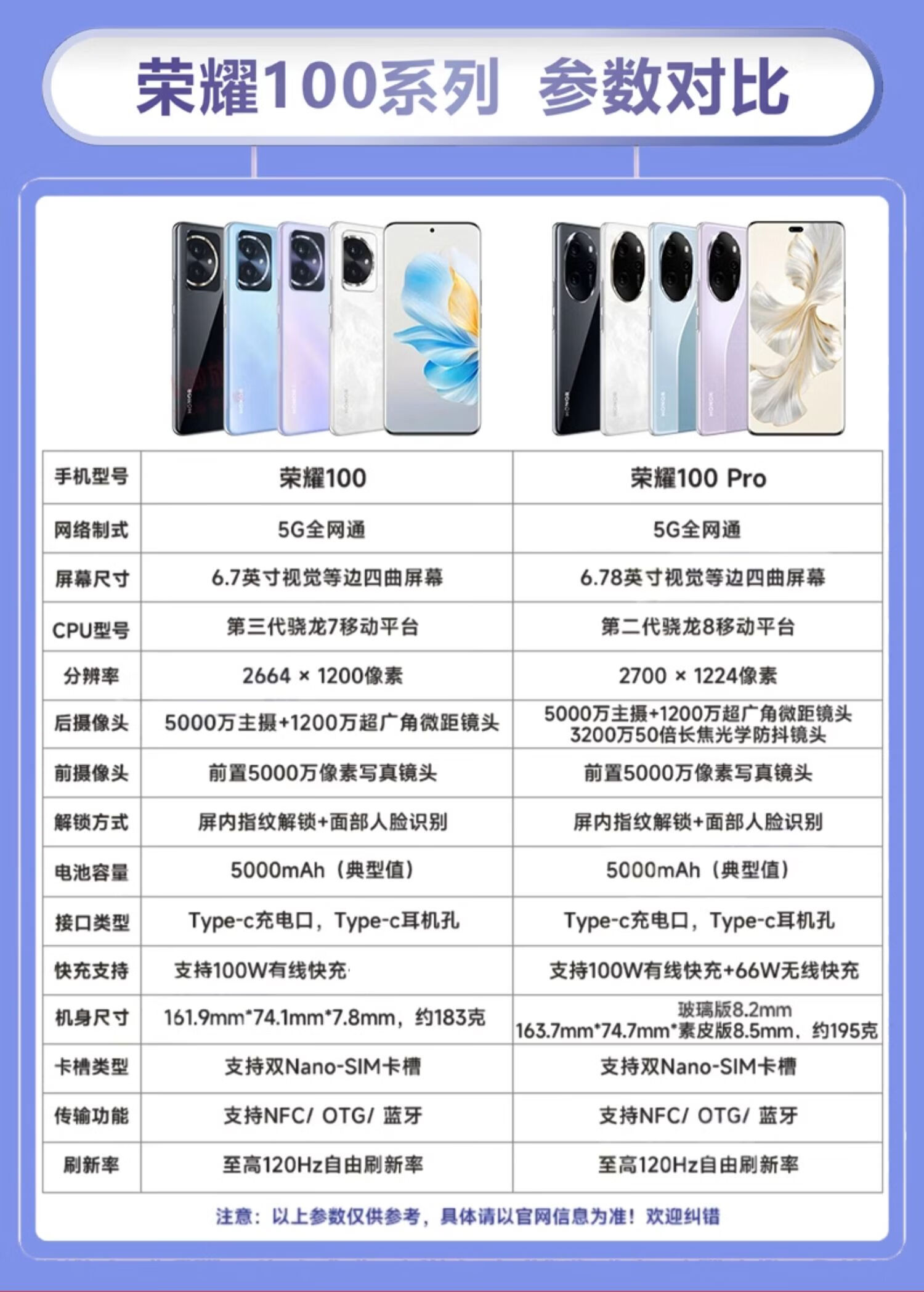 荣耀(HONOR)100 5G通手机 第三代骁龙7处理器 荣耀绿洲护眼屏 迷蝶蓝 16GB+512GB 单机+第三方品牌快充+店保一年
