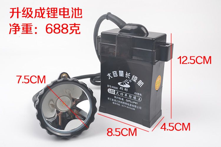 利利4088B白光10W锂电作业头灯矿灯带电瓶钓鱼灯夜钓灯可充电强光 纯蓝光