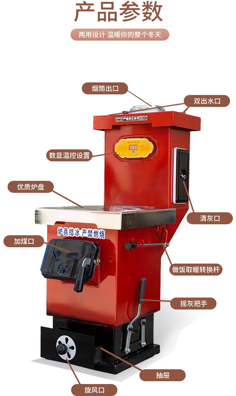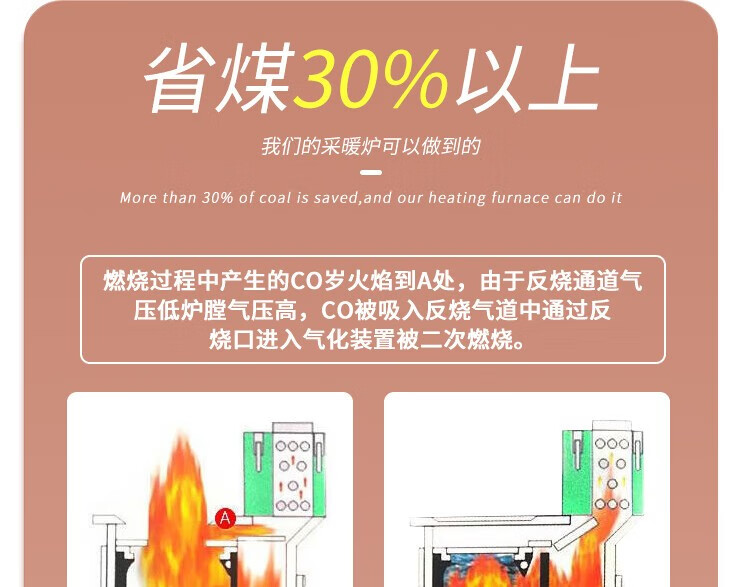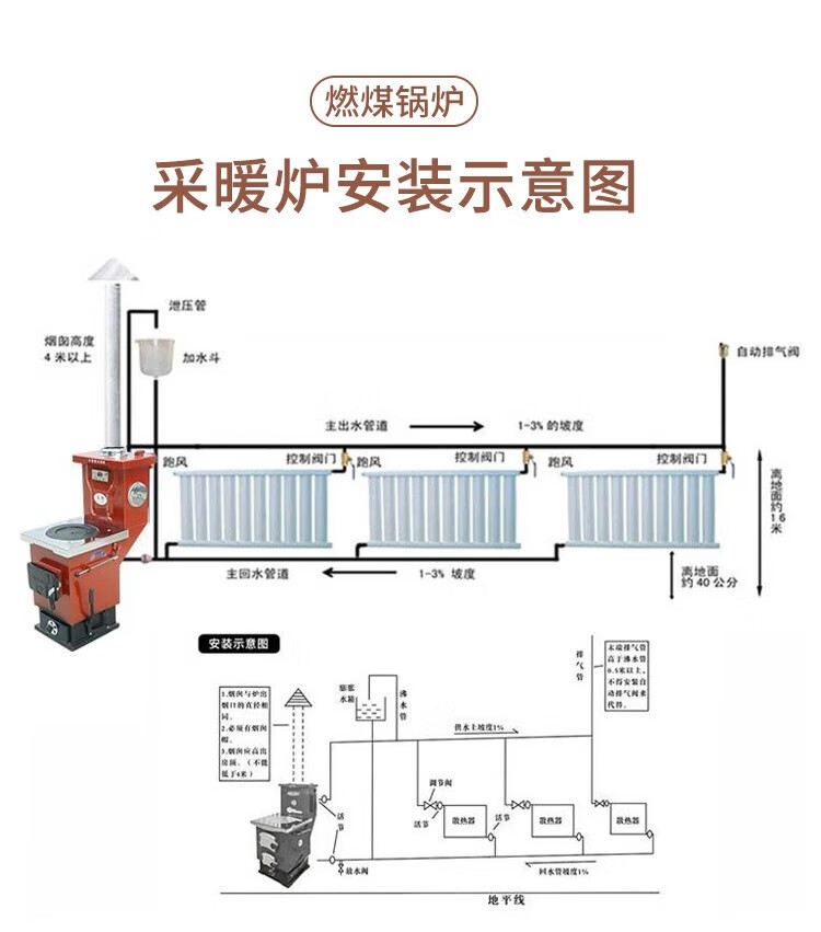 杰亚森锅炉燃煤家用采暖节能暖气炉农村带暖气片取暖炉子小型反烧 新节能100型双气化通天通炕