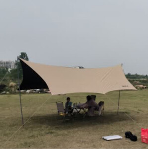 之前看到过别人的椅子,质量不错,就记住了这个牌子,想节假日带小朋友外出露营,天幕真的必不可少,防晒,挑选了很多的品牌,也包括他家的其他款式,最终选择了这款,底层是黑胶还真的会比其他材料凉快些,而且天幕还是买大一点会比较好,人多人少也能通用,这款的话一家几口人就绝对没问题。