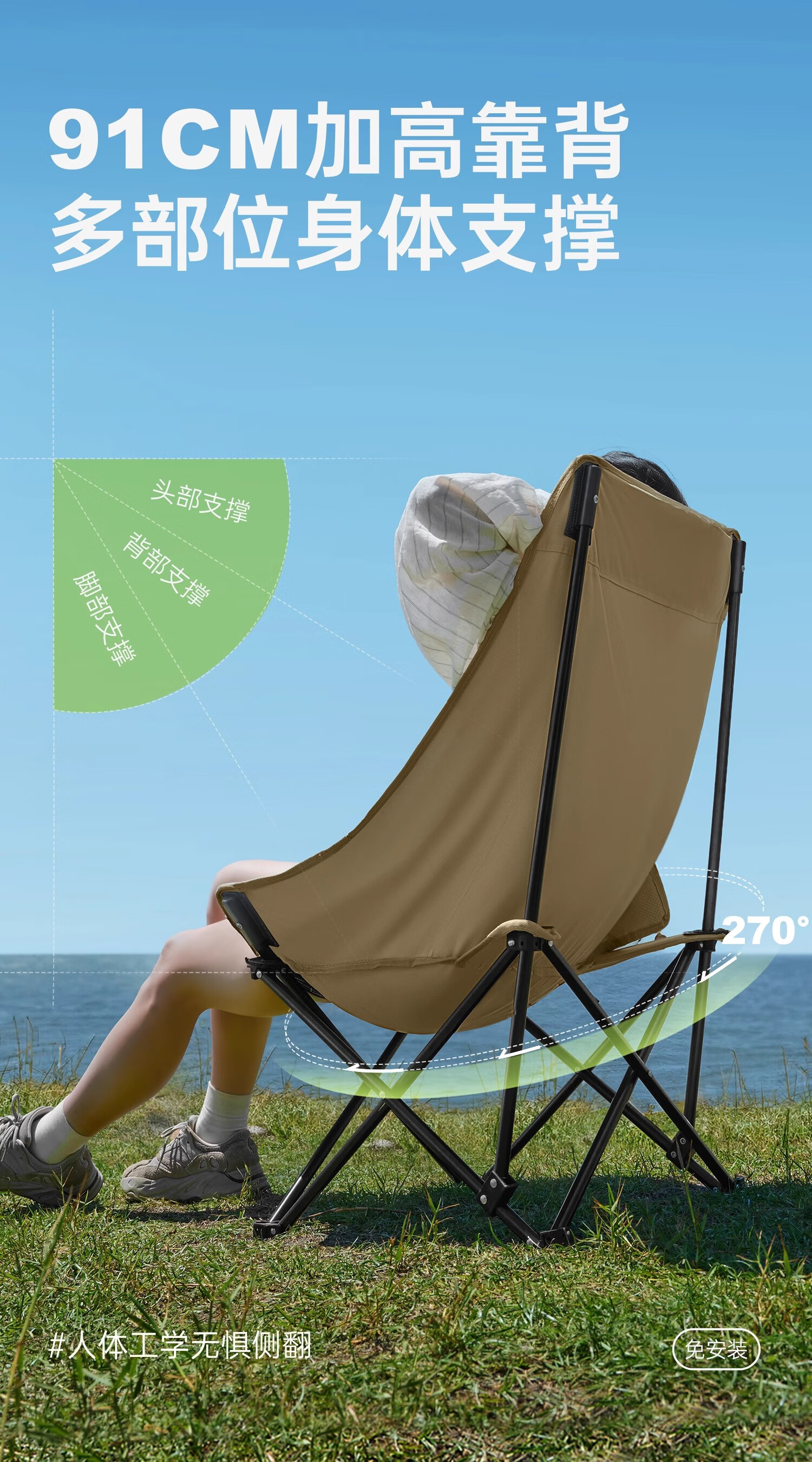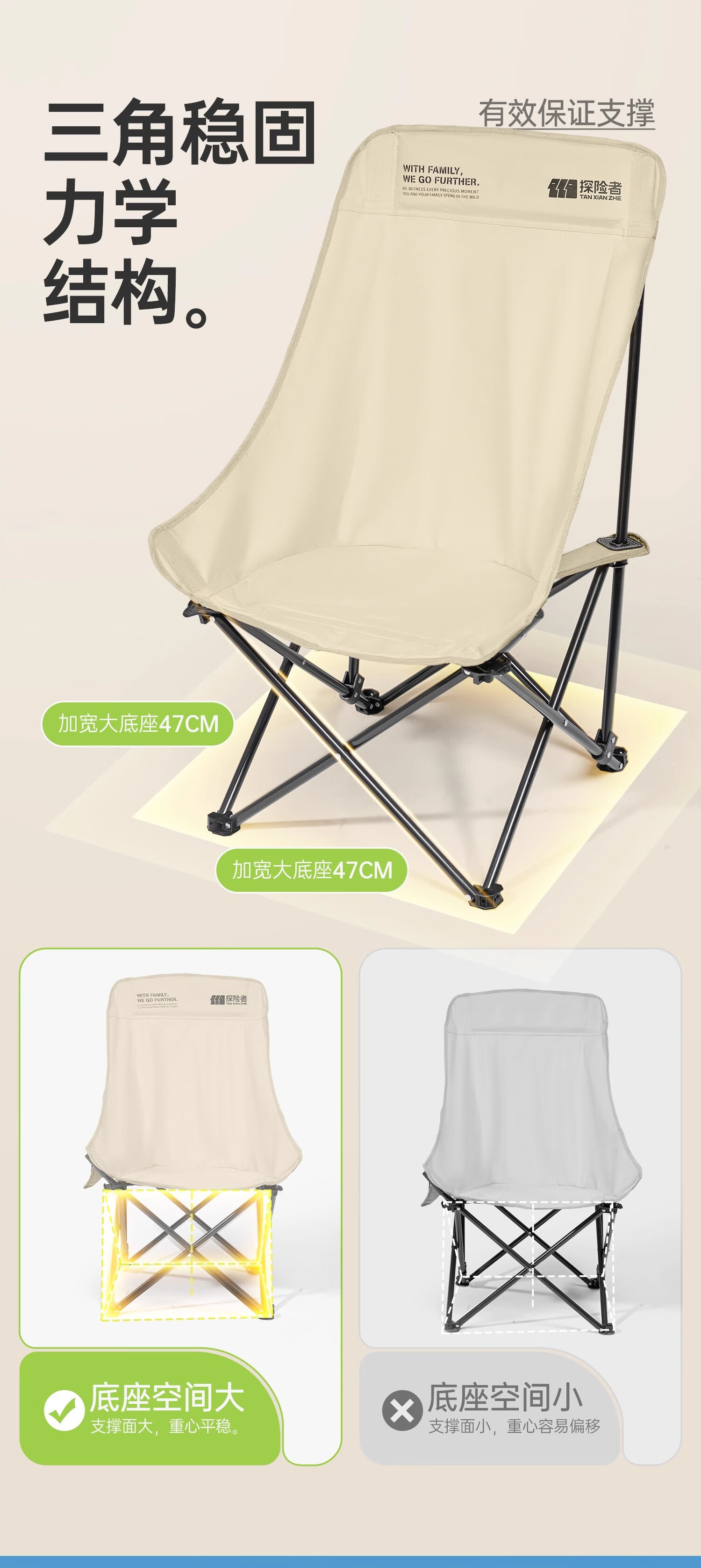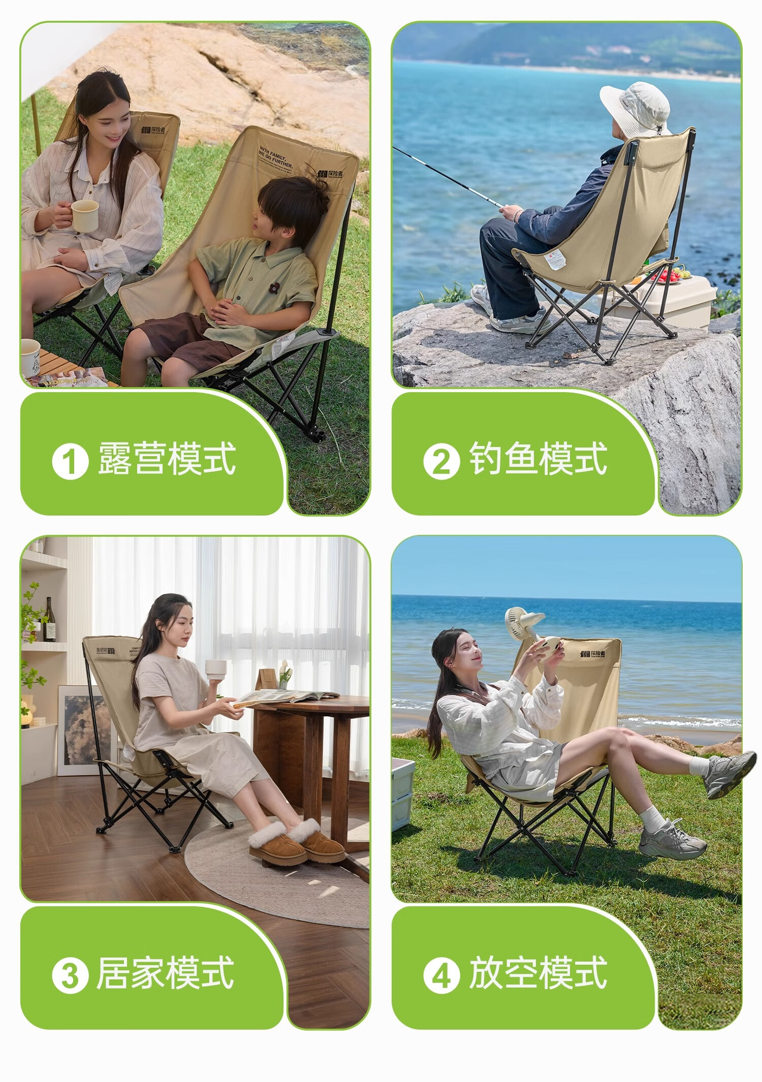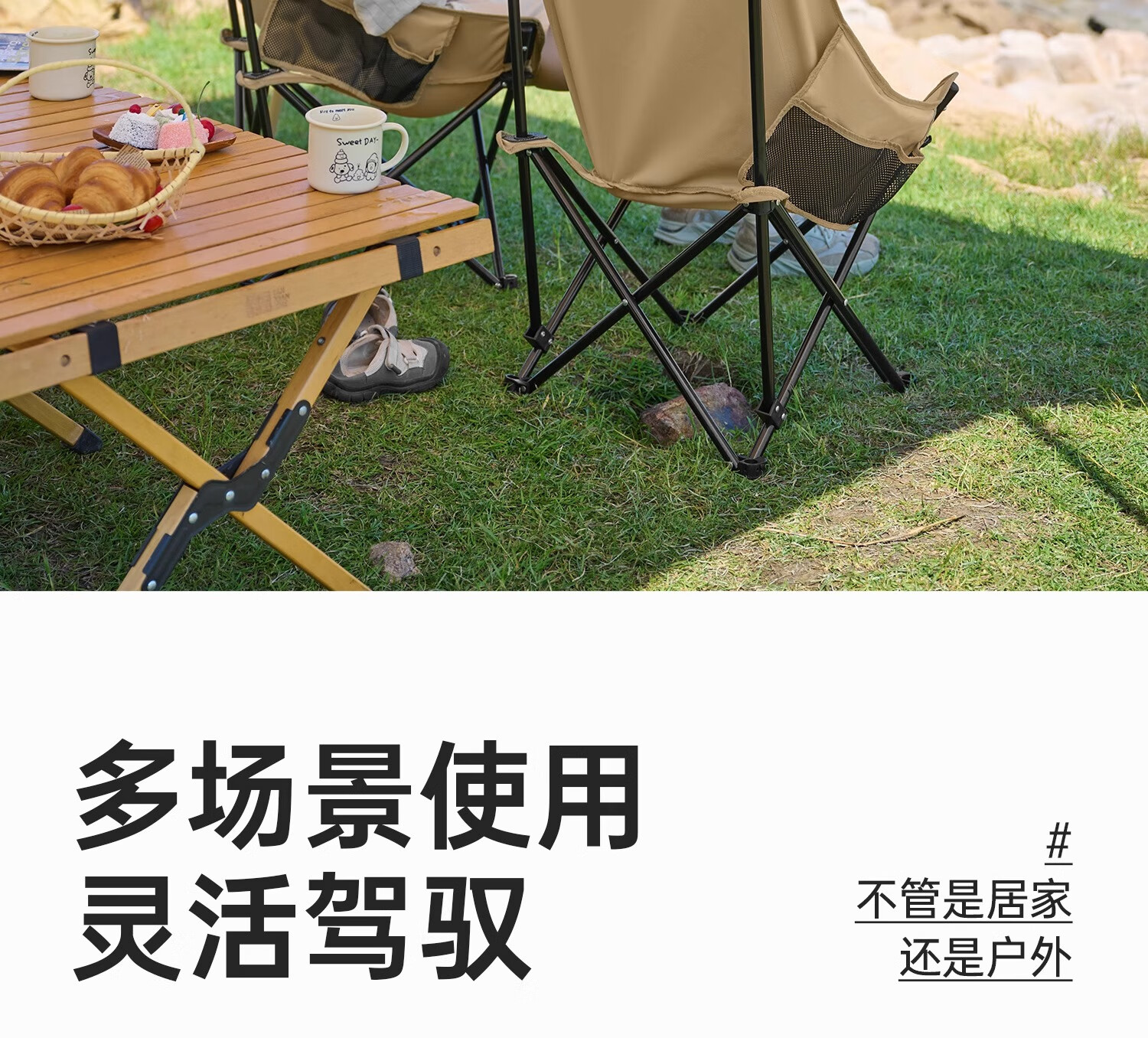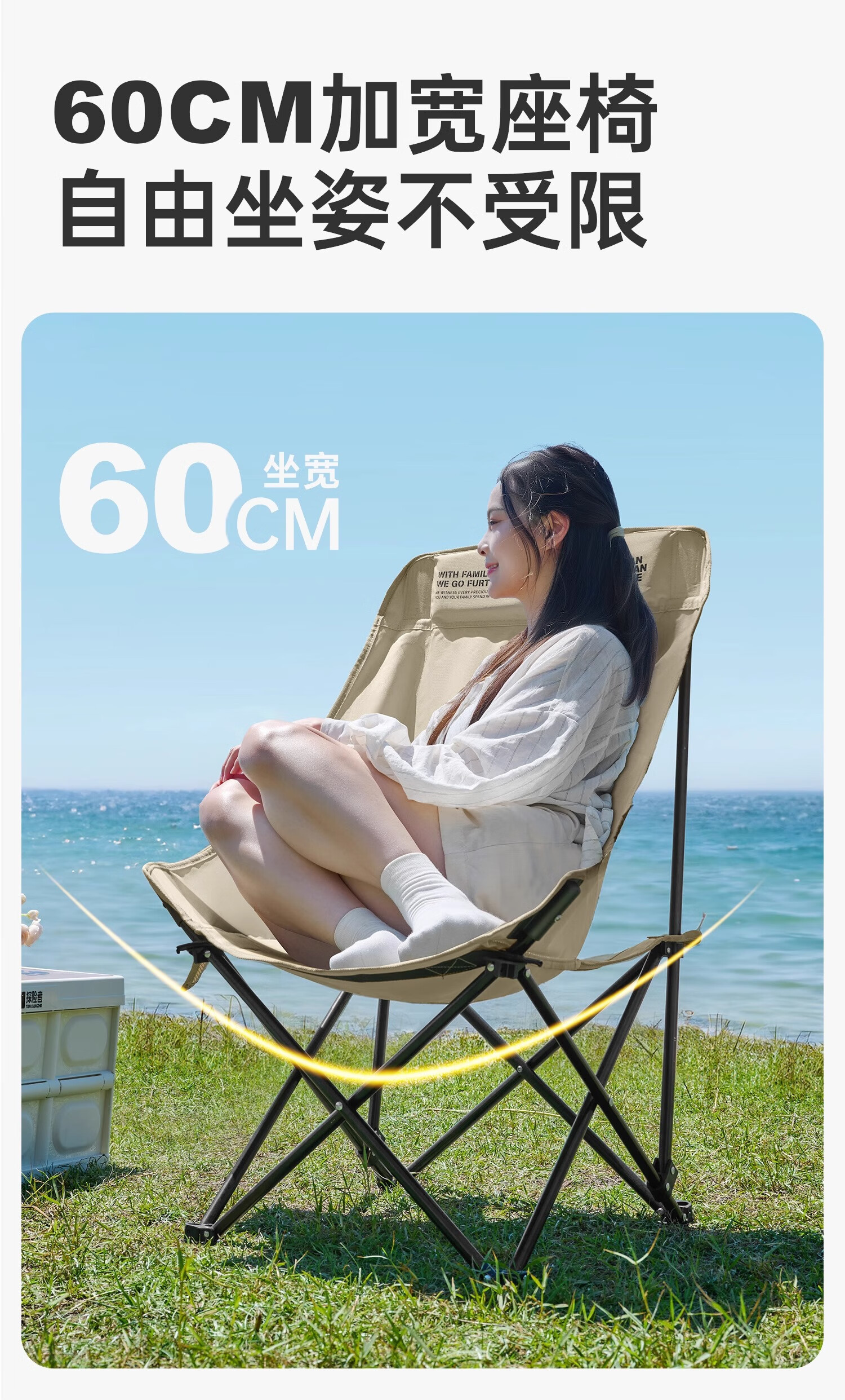 探险者月亮椅不愧是露营神器!高靠背云感软包设计久坐不累,卡其色品质面料高级又耐脏。折叠后小巧便携,展开却稳如躺椅,钓鱼野餐都能用。加厚支架承重力强,坐感比普通露营椅舒服太多,户外宅家两相宜,颜值实力双在线!
