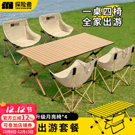 探险者户外折叠桌便携式蛋卷桌露营桌椅套装野营野餐桌摆摊露营装备全套 120蛋卷桌+4*高靠背月亮椅