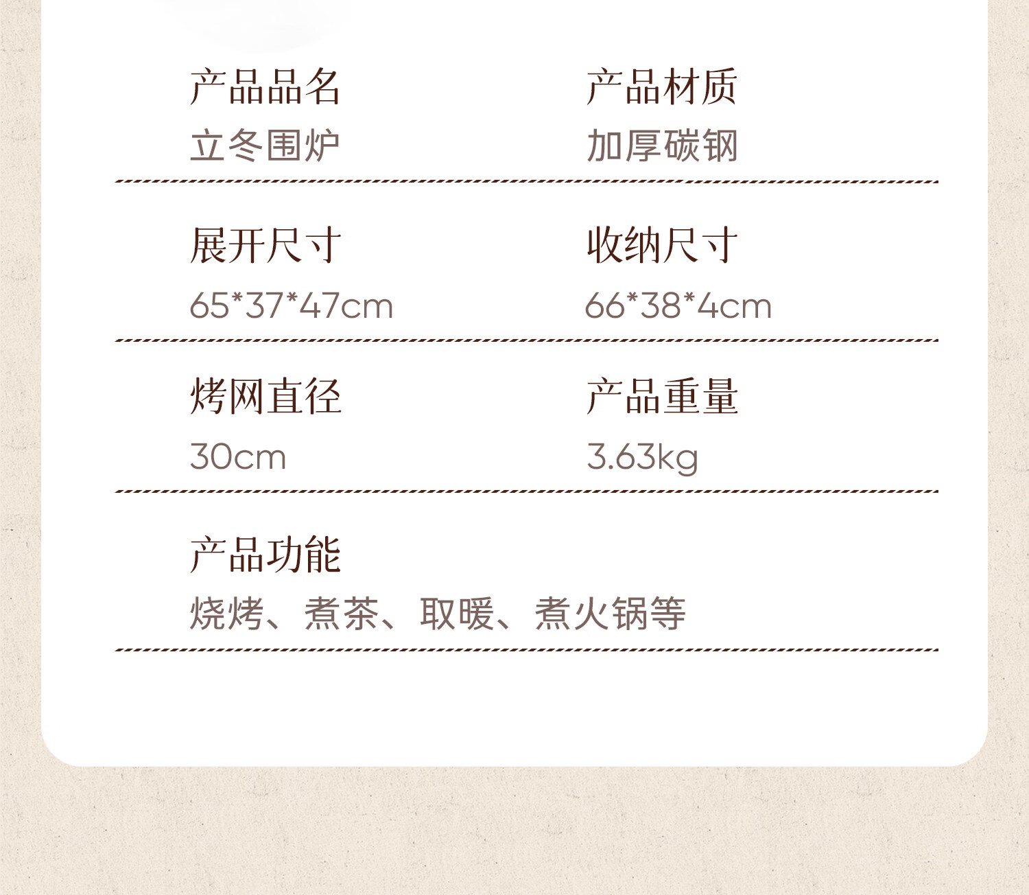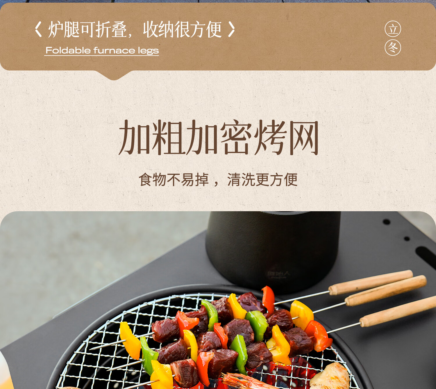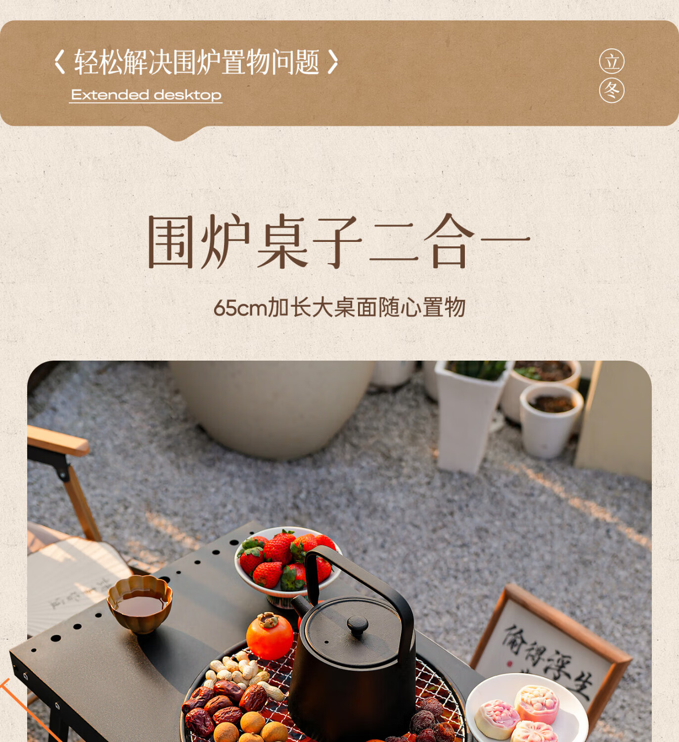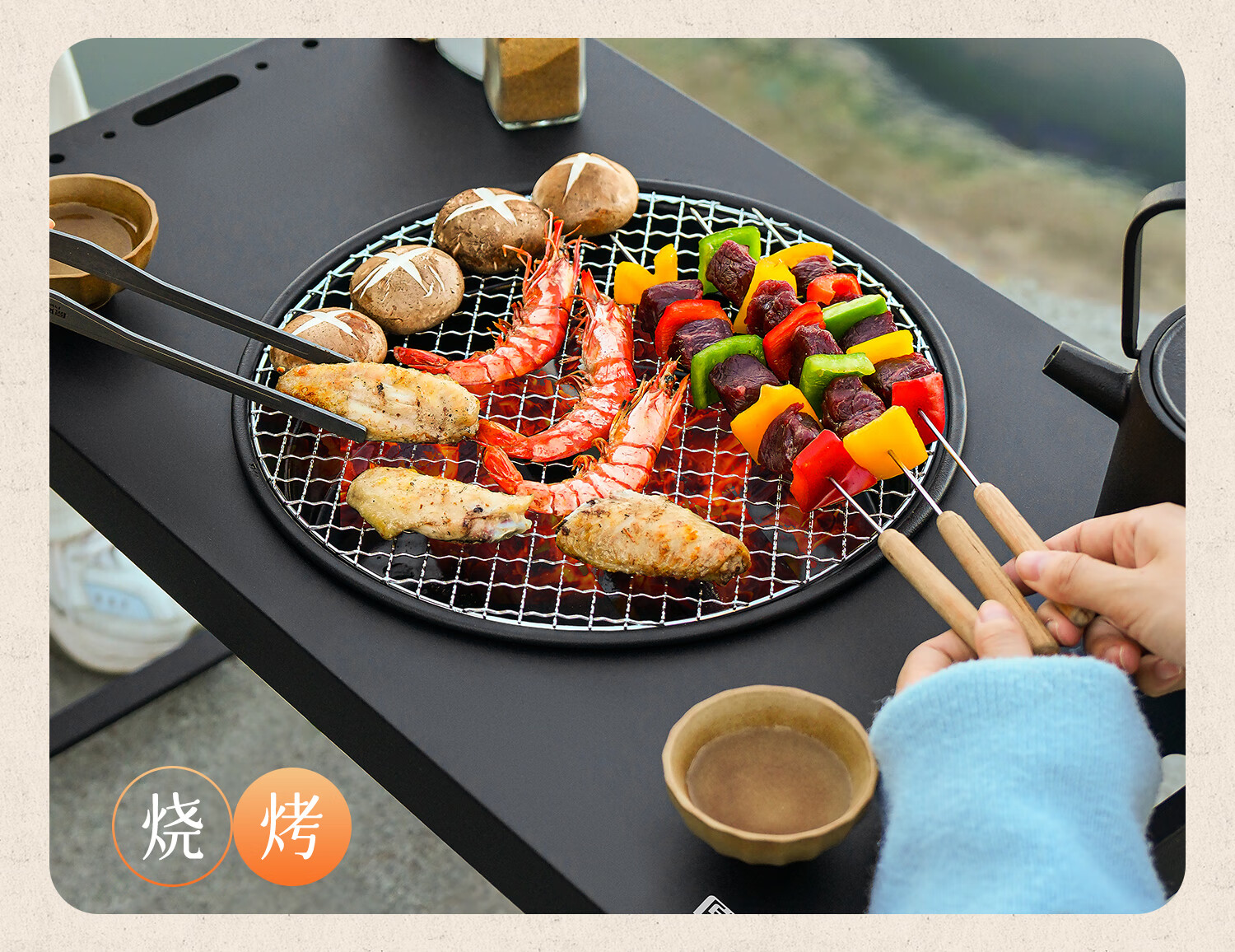 为了露营能弄点小烧烤,特意在网上买了这个围炉煮茶工具,设计挺合理,用了两次也挺好用,可以小烧烤,也可以围炉煮茶,收纳携带也比较方便,可以好评!