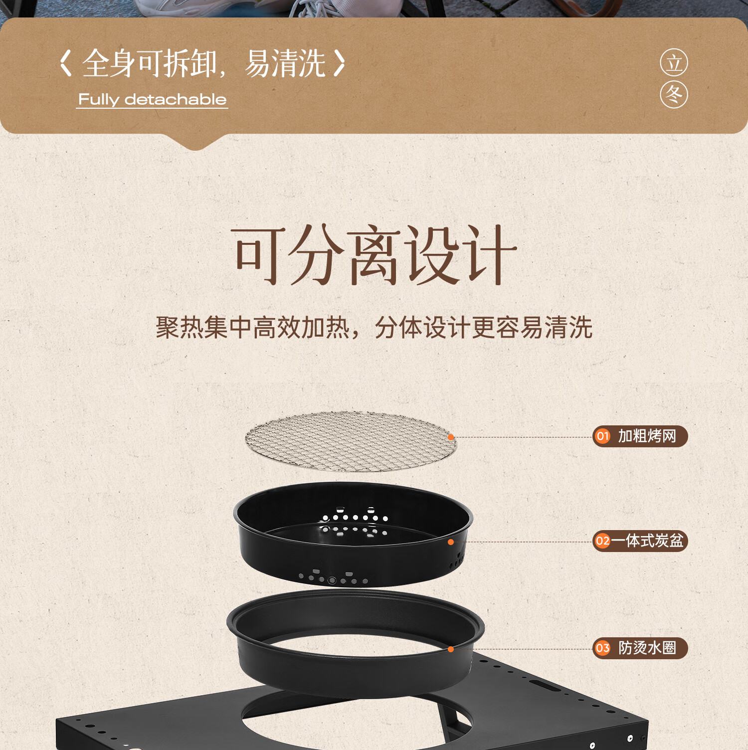 探险者探险者围炉煮茶套装电碳两用围炉桌烧烤煮茶一体烤火炉家用围聚煮 [60cm]电碳两用围炉桌