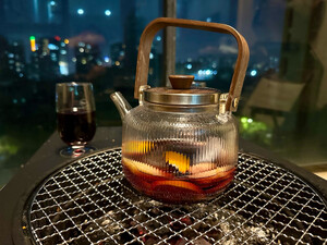 围炉煮茶套装,相当巴适。 高度大概四五十公分,比较合适,两边有放东西的空间,还是很方便。 最赞的是套餐带了个铁壶,质感还可以。 整体来说,性价比超高。 美中不足,不应该配长碳,很难用,半天燃不起来。。。。