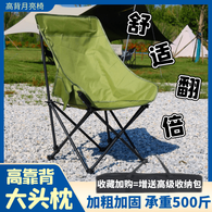 骆驼(CAMEL)户外加高靠背月亮椅碳钢折叠椅可携式钓鱼凳野餐露营阳台休闲 【绿】加高靠抱婴袋头枕-户外沙发椅+包