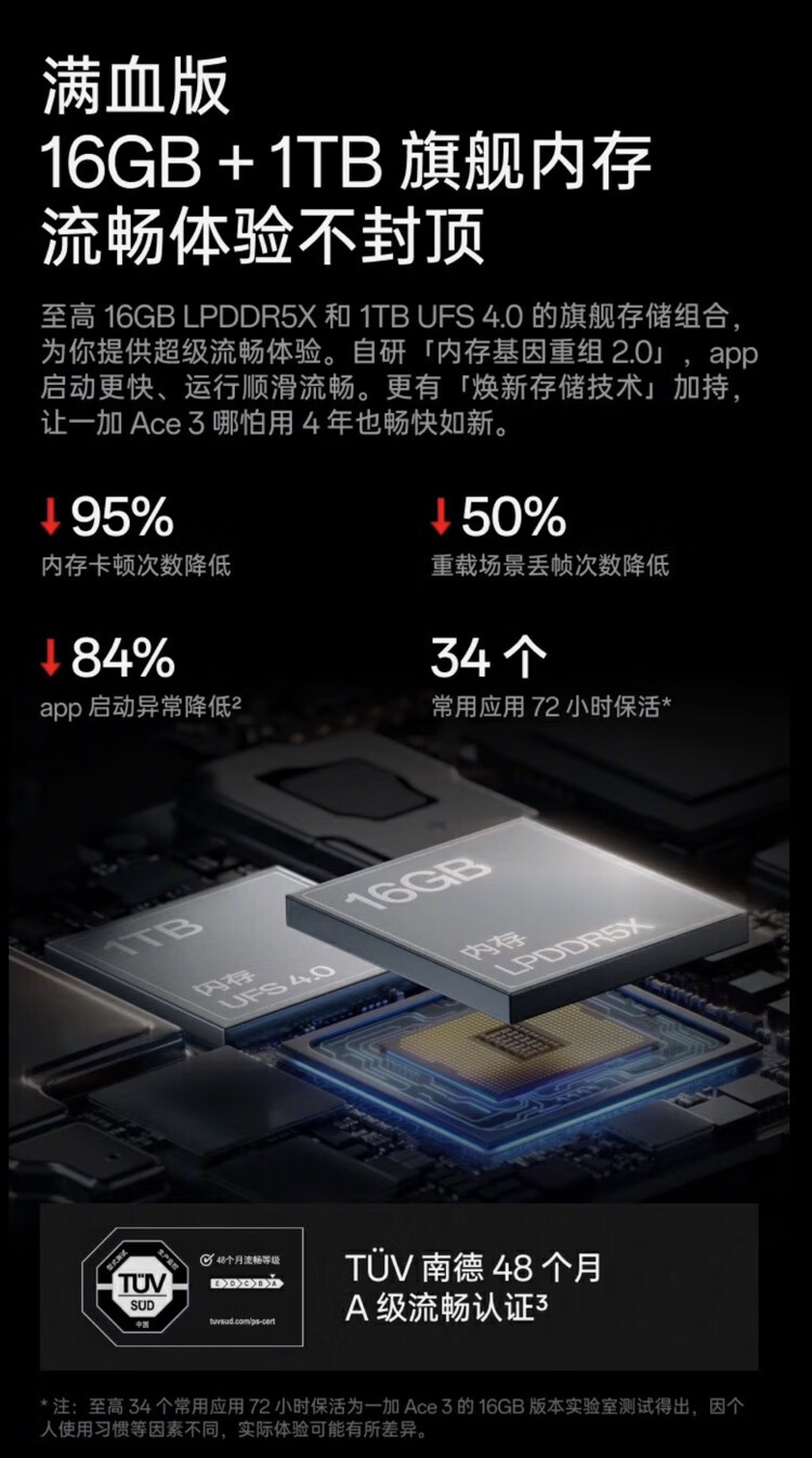 一加Ace 3 5G手机 第二代满血骁龙8 电竞游戏手机1.5K东方屏 12+256GB 星辰黑 单机+原线原充