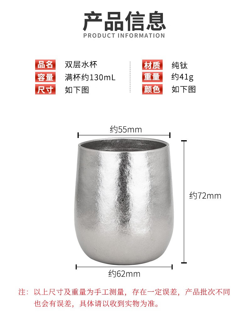 注:产品包装新旧款随机发,旧款包装上印刷120mL容量,杯子实际容量130mL。