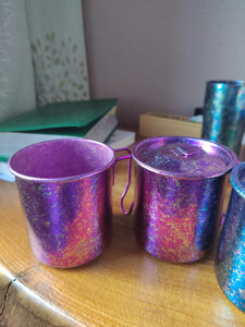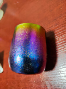 钛合金的东西,质量轻,硬度高,关键是使用起来放心,没有那些乱七八糟的东西。炫彩的很漂亮的,紫色的和蓝色的也是,闪闪发光,看起来很高档。