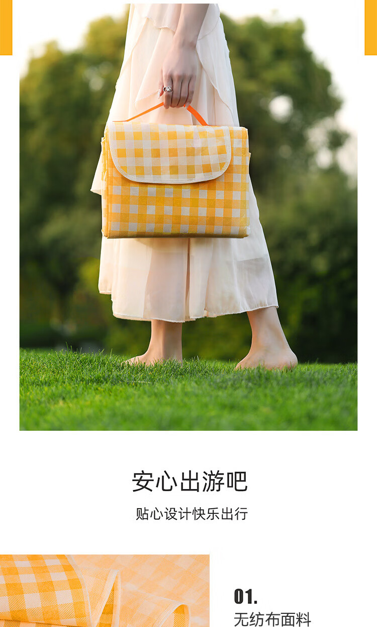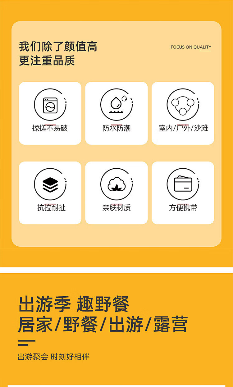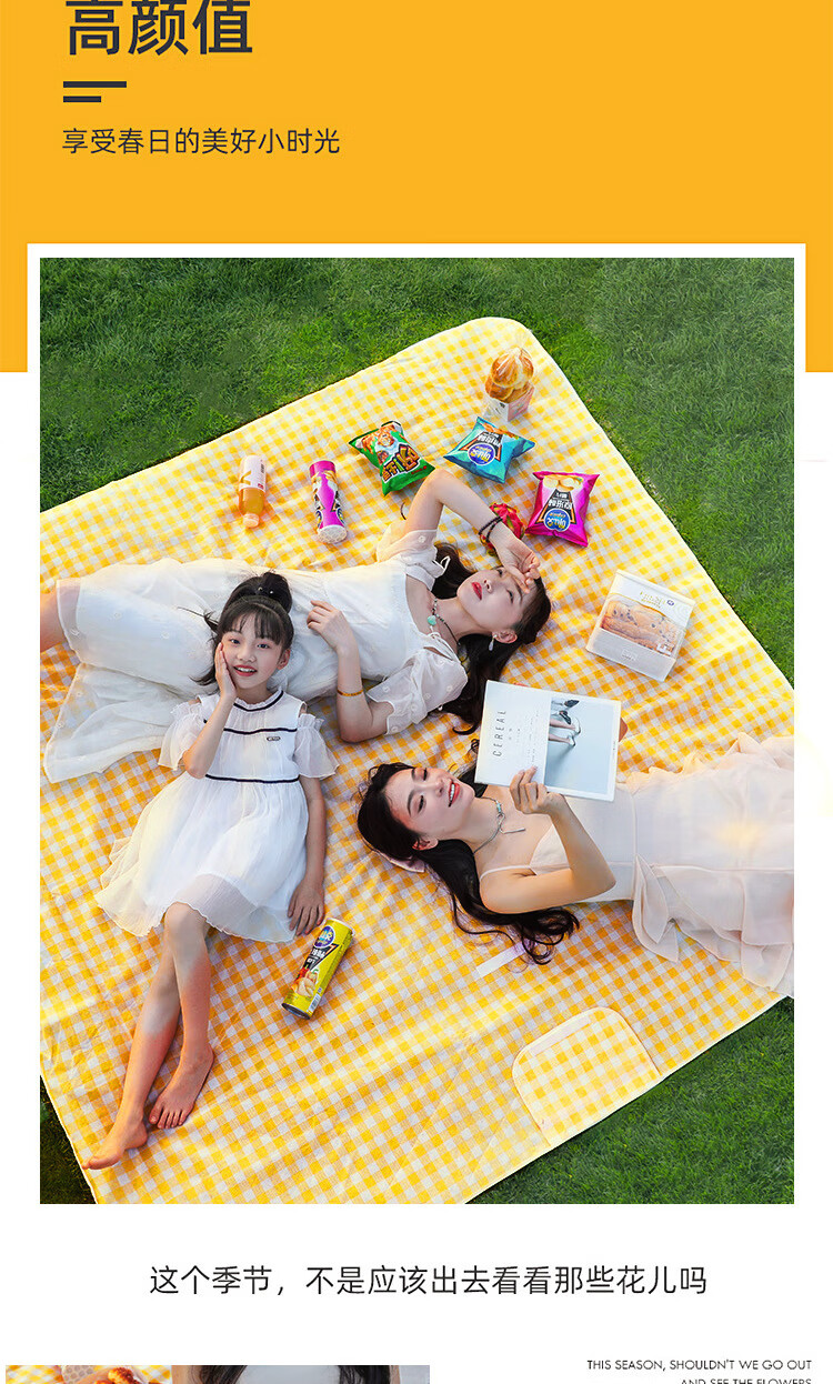 防潮垫野餐垫户外露营加厚便携式桌布加大地垫郊游春秋季野餐布 加厚野餐垫(黄色 1米*1.5米