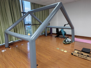气柱收到了,有气柱和没没有气柱撑起来那个效果完全不一样。拓展帐篷,这样一下就看起来特别饱满,特别好看感觉空间都大了很多
