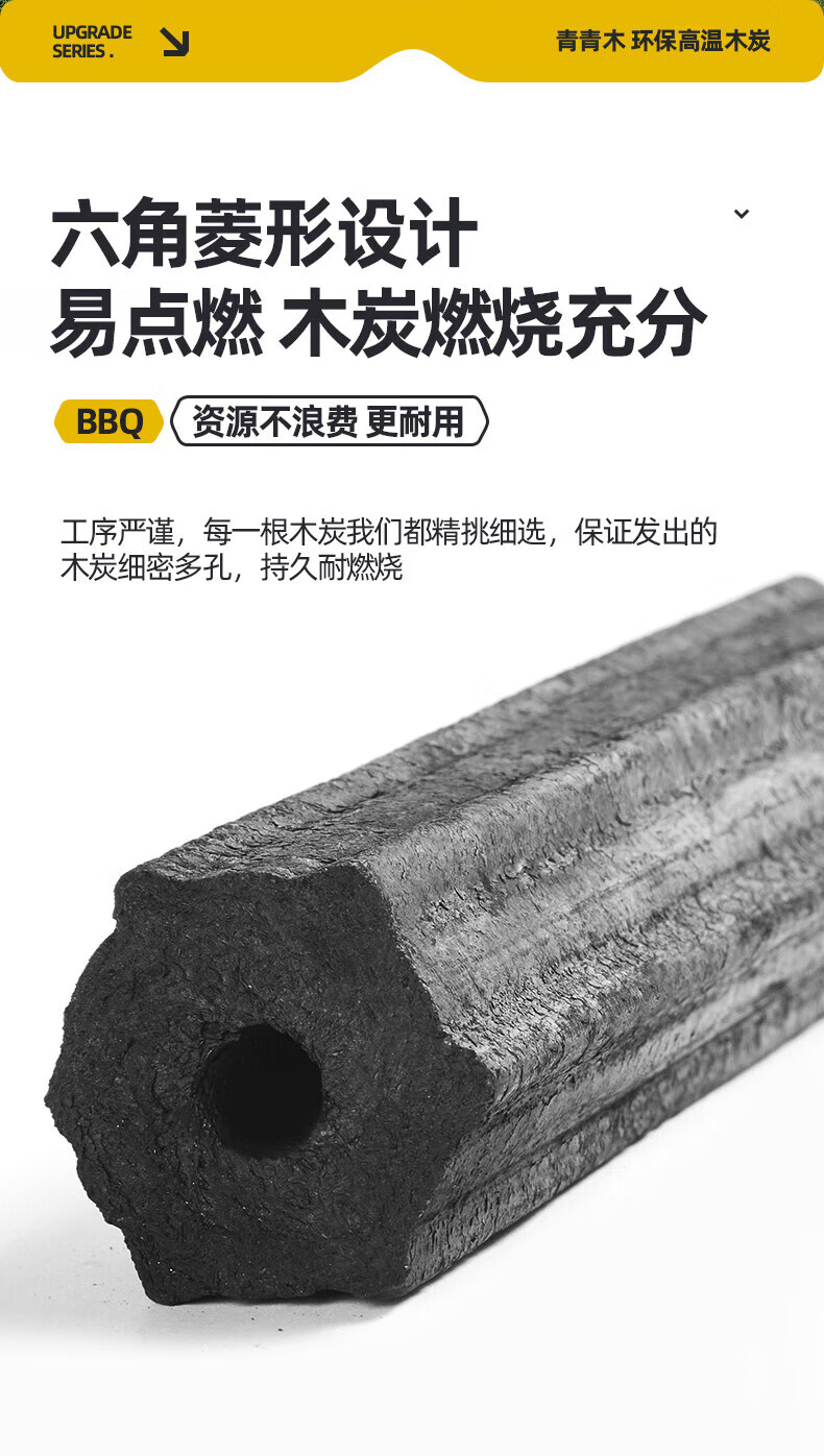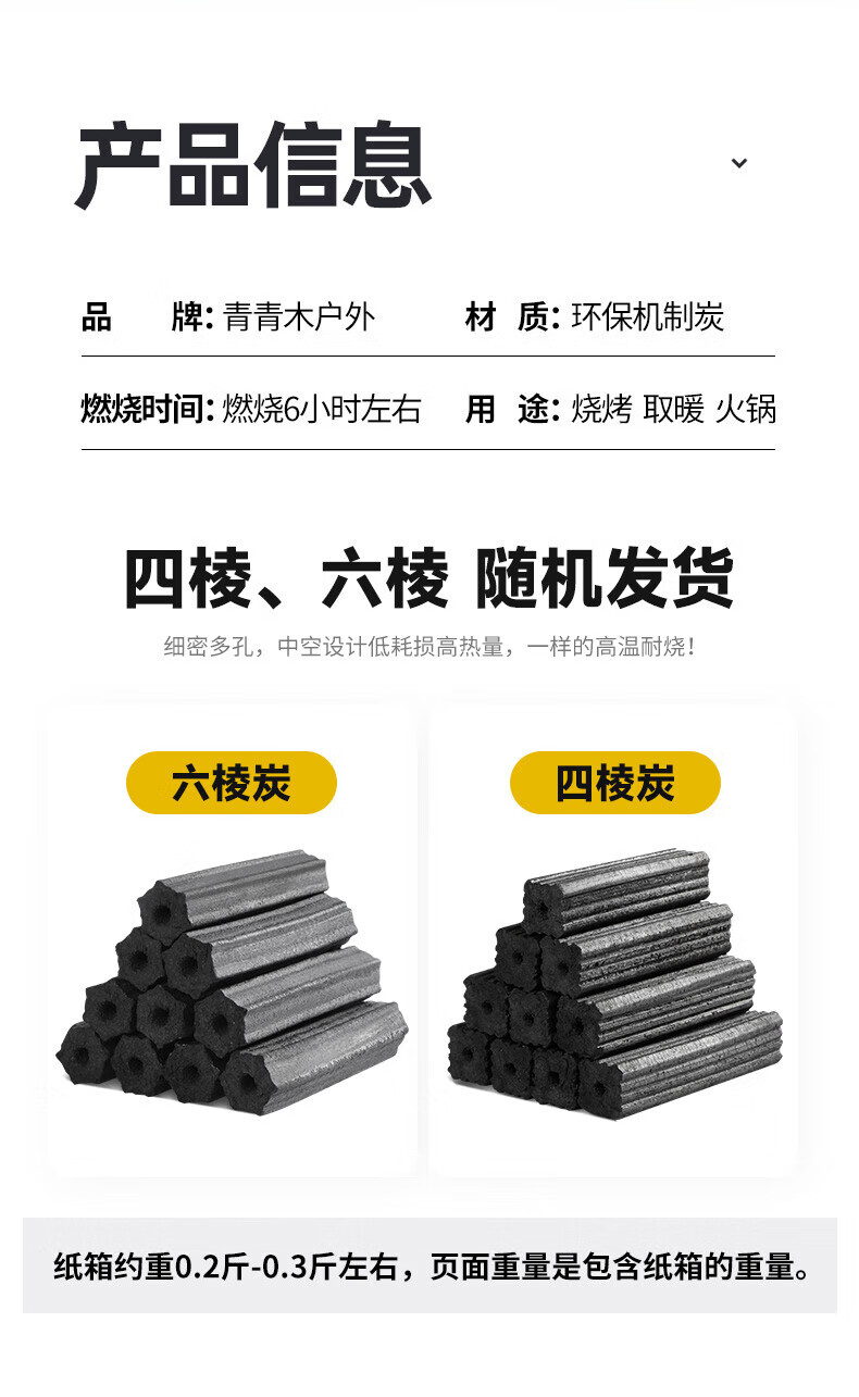 烧烤碳木炭火锅炭围炉煮茶取暖耐烧炭条形空心机制木炭无烟烧烤炭 精品炭10斤装+4个引燃块+碳夹
