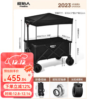 原始人露营推车超大营地拖车可折叠户外小拉车手推野营野餐遛娃手拉车 260L 顶棚套餐:耀黑+加厚折叠顶棚
