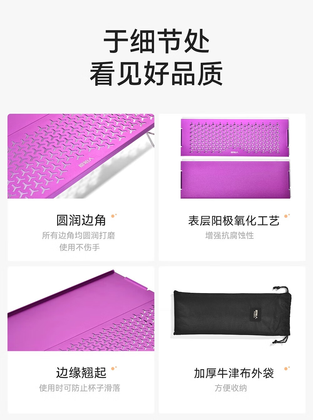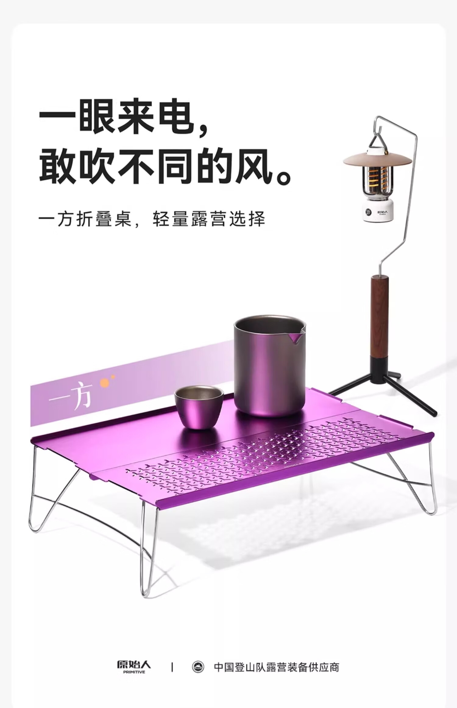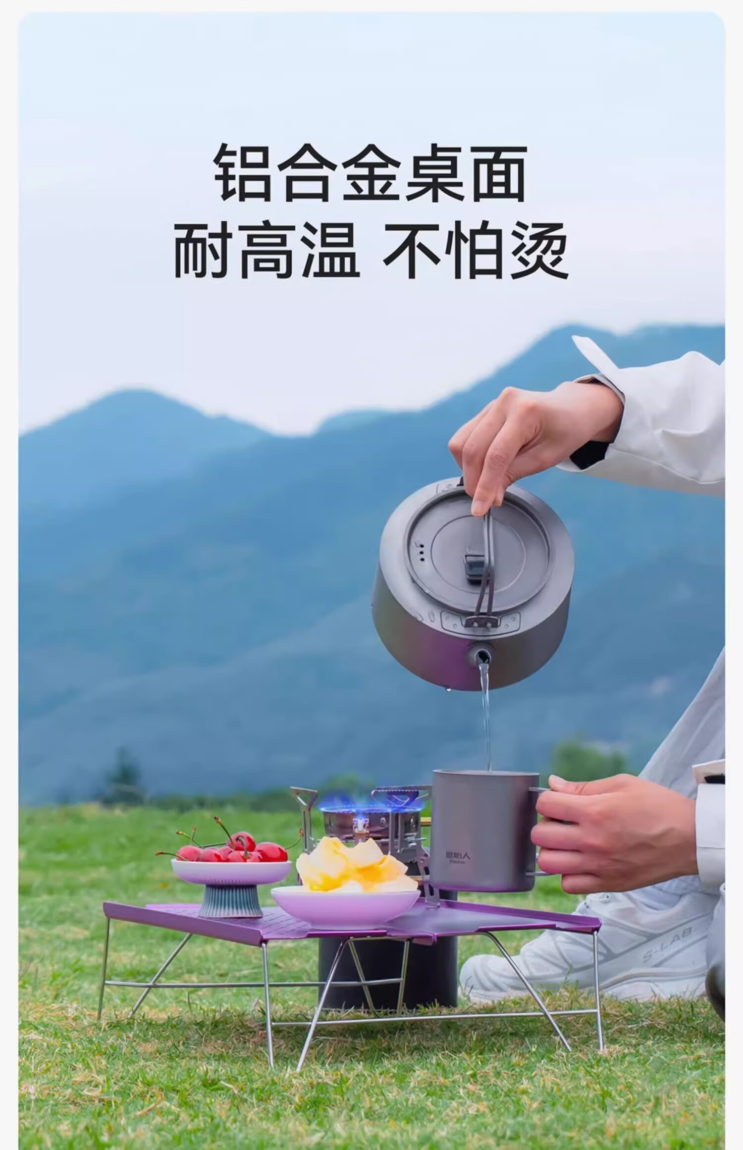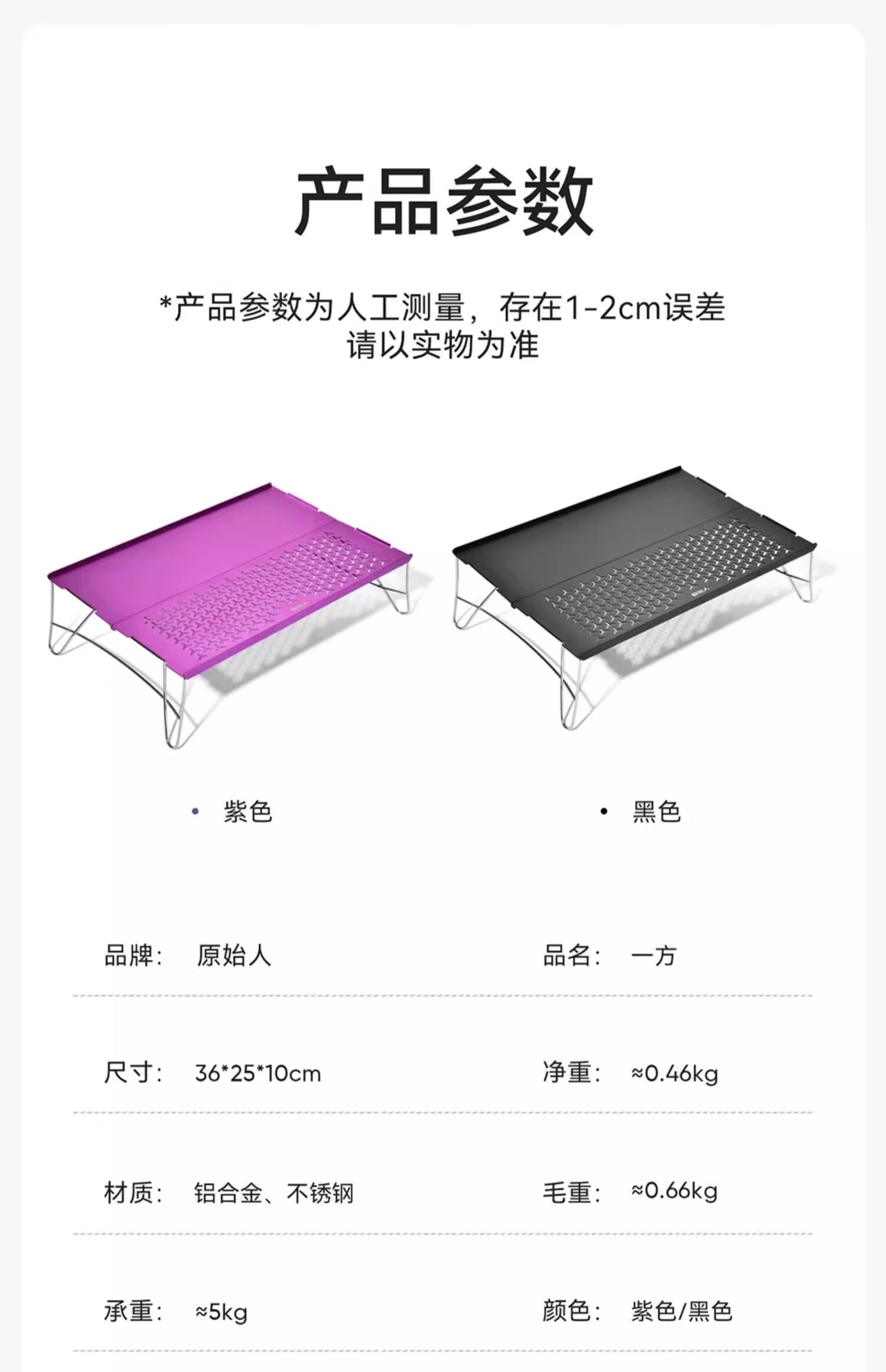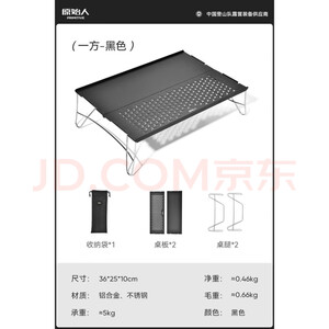 原始人铝合金折叠桌户外露营徒步登山野餐小型便携折叠超轻小桌子 黑色