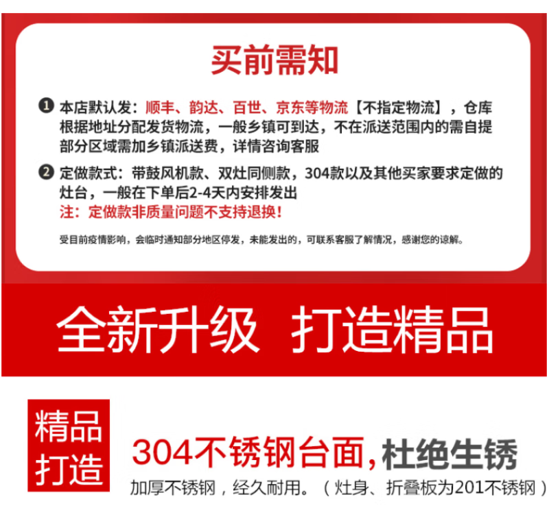 产品外观、不锈钢材质、做工都挺好的,但是使用时全程烟太大,燃烧不充分,浪费木材,主要是不利于环保,我们之前刚用过家九福的单灶,他家材质做工不如 昹砺斯,但他家使用过程中燃烧充分,火有劲,烧过的灰细。后来参照家九福,我们找人进行了改造,在灶门下面封板开了通风口,感觉就好多了,下一步再想办法把灶门上观察孔堵上,可能还要再好点,希望对别人采购有个参考,也希望厂家进行改进