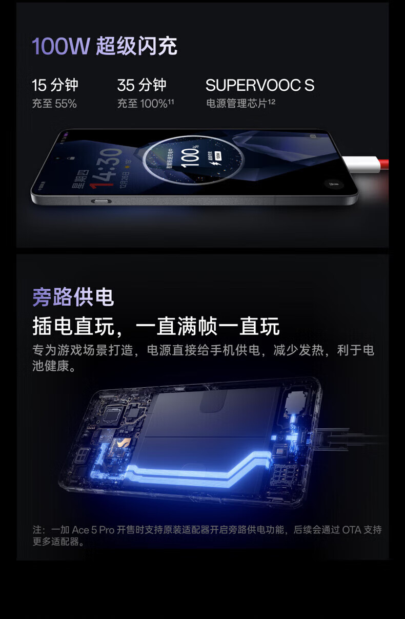 一加展机Ace5 Pro 游戏智能手机高通骁龙8版旗舰芯片AI游戏性能手机 星穹紫 16GB+512GB 单机+原装快充+全国联保