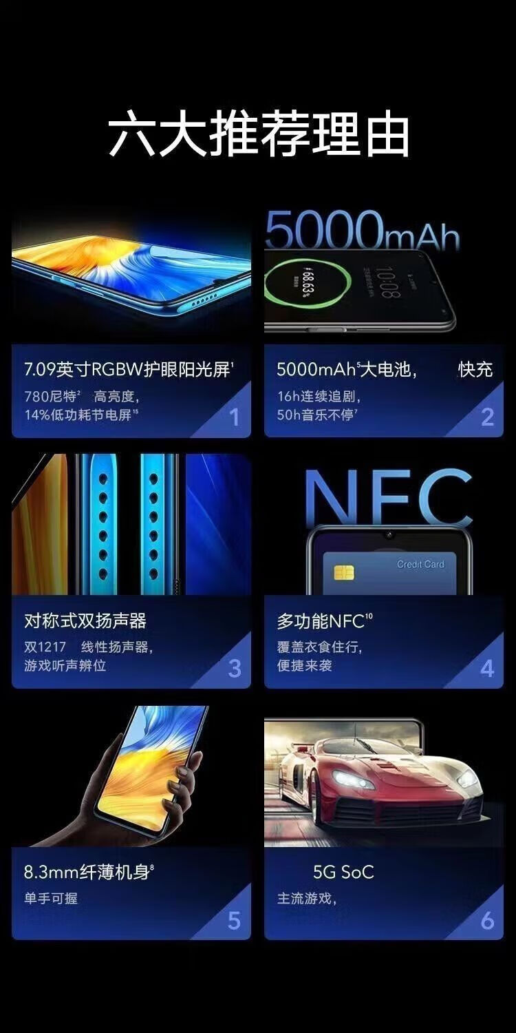荣耀X10Max5G全网通双卡双待超大屏幕NFC超快充智能手机 竞速蓝 8GB+128GB 全网通5G